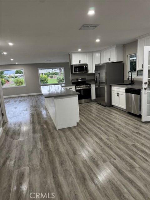 Completely renovated from top to bottom, this stunning home showcases a full rehab with no expense spared. Enjoy peace of mind with all-new electrical and plumbing systems throughout. The interior features brand-new showers and toilets, new energy-efficient windows accented with elegant crown molding, and commercial-grade Grady vinyl flooring that is waterproof and scratch-resistant. The beautifully customized, fabricated kitchen offers expansive counter space and overlooks the serene greenbelt, creating the perfect setting for cooking and entertaining. All-new stainless steel appliances complete the modern design. Exterior upgrades include a new side gate and professionally landscaped yard with striking lava rock accents for added curb appeal and low maintenance. This move-in-ready home blends quality craftsmanship with stylish finishes—truly a must-see!