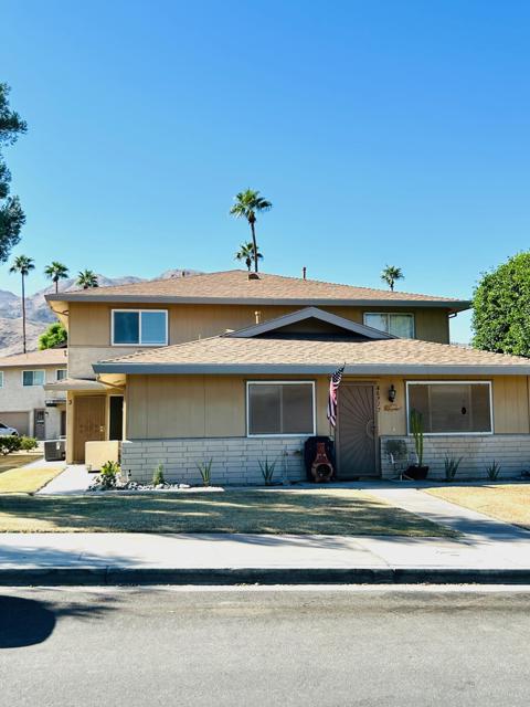 This beautifully updated home blends contemporary style with comfortable desert living. The light, open floor plan showcases vaulted ceilings, luxury vinyl plank flooring with a modern wood look, and a sleek Quartz-accented fireplace with custom shelving. The adjoining den offers versatility and quality craftsmanship, featuring built-in cabinetry, glass bar shelving, a built-in desk with soft-close drawers, Quartz countertops, and LED ceiling lighting -- ideal for use as an office, media lounge, or hobby space. The remodeled kitchen impresses with an oversized island, Quartz countertops, upgraded stainless appliances, soft-close and roll-out cabinetry, and recessed LED lighting. Every detail reflects thoughtful updates, including a newer (2022) HVAC system, energy-efficient vinyl windows, newer roof, and renovated baths. Additional enhancements include fresh interior paint, plush carpeting in bedrooms, stylish plumbing and lighting fixtures, organized closets, a glass front entry door, French doors, and a newer water heater -- all contributing to a move-in-ready home that lives beautifully. The spacious primary suite features a large walk-in closet and an elegant ensuite bath with double vanities and updated finishes. Outdoors, the wrap-around patio captures scenic views of the 5th fairway of the community's 9-hole golf course framed by picturesque mountains -- the perfect setting for morning coffee or evening relaxation. Convenient laundry room and generous storage space add everyday functionality. Suncrest Country Club is a private, gated 55+ community of 359 homes offering resort-style amenities including 3 sparkling pools/spas, tennis, pickleball, and golf. The clubhouse features a cafe, billiards room, library, and active social calendar. Ideally located near grocery stores, restaurants, and everyday conveniences -- just minutes from Eisenhower Health Campus, popular box stores to the north, and the luxury shopping and dining of El Paseo to the south. Palm Springs International Airport is only about 10 miles away.