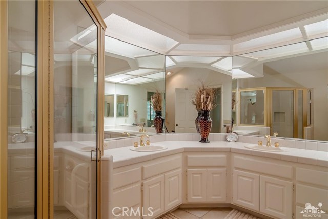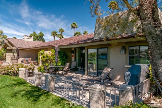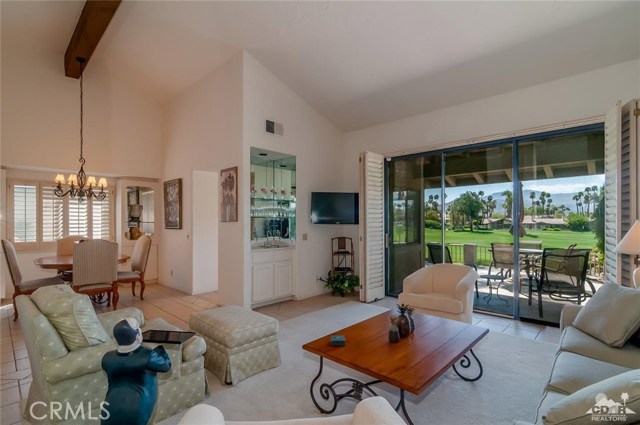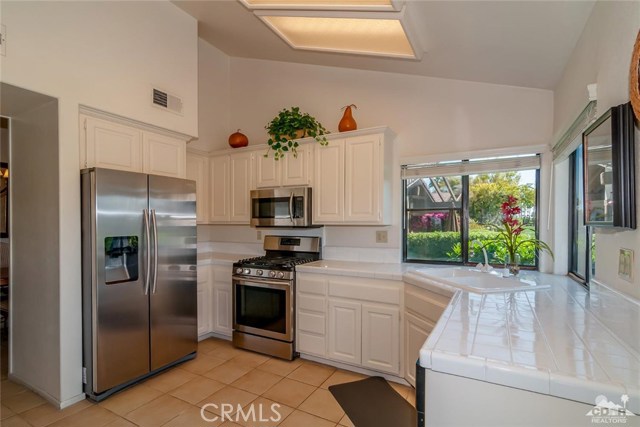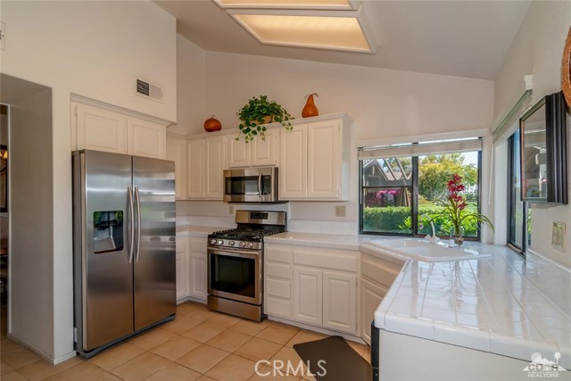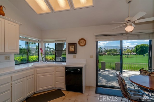 New Price !!Mountain & Lake & Double Fairway views! South Facing! The Lakes! Palm Desert! Three bedroom Abilene model ( third bedroom now a den) with high ceilings and two bathrooms. The home has been updated with tile floors along with upgraded lighting. The living room with gas fireplace and offers the best in entertainment. The kitchen with lots of natural light ,stainless steel appliances opens to the entertainment back porch. The back porch has mountain views & lake views and double fairway views in one of the best locations of the community. Double car garage and highly sought after golf cart garage. Home is close to the community pool and clubhouse. The Lakes CC offers 27 holes of member owned golf , active clubhouse, bocci ball , tennis,pickleball and superb fitness center . World class restaurants and shopping are close. Call today to view this home !