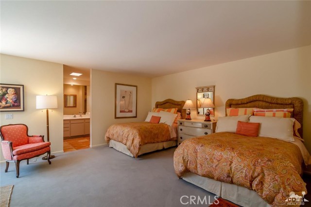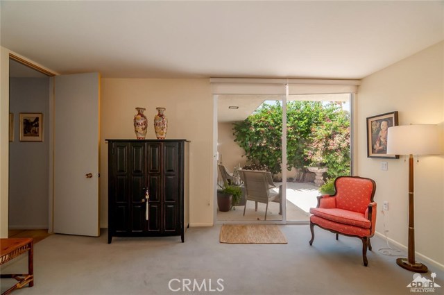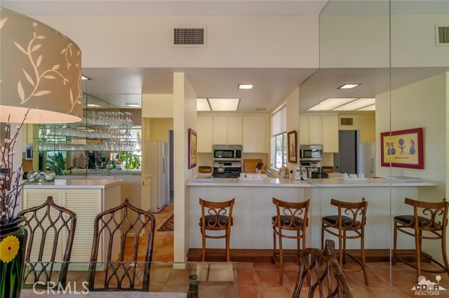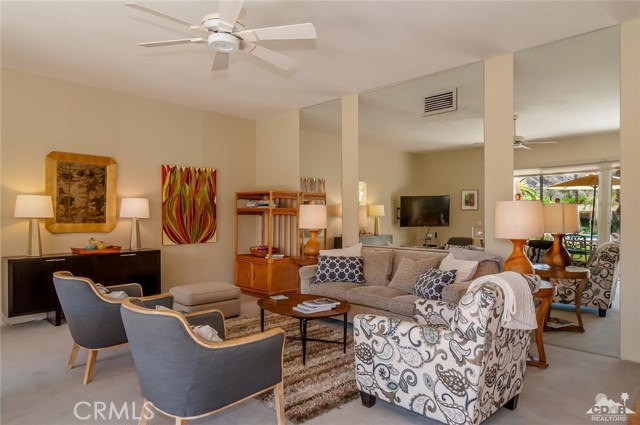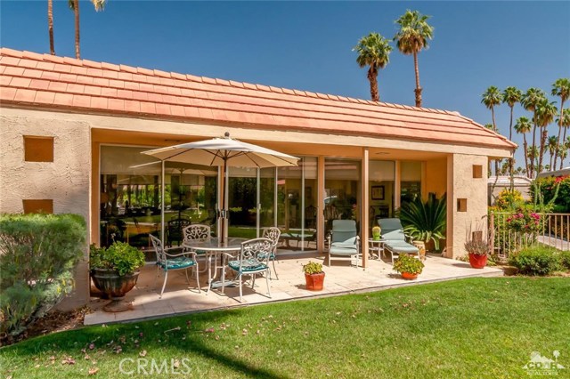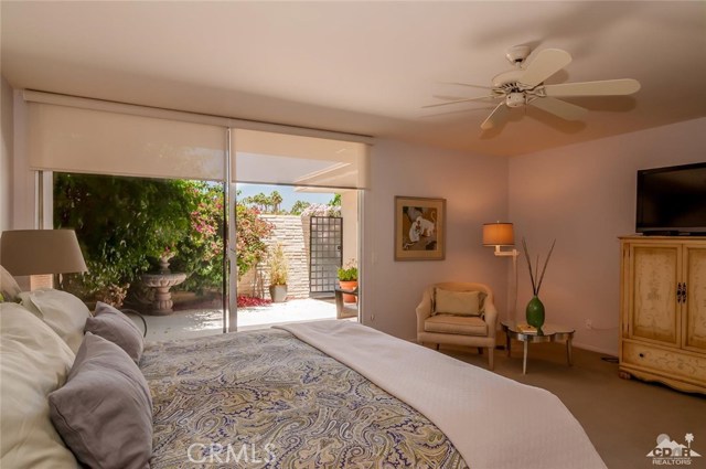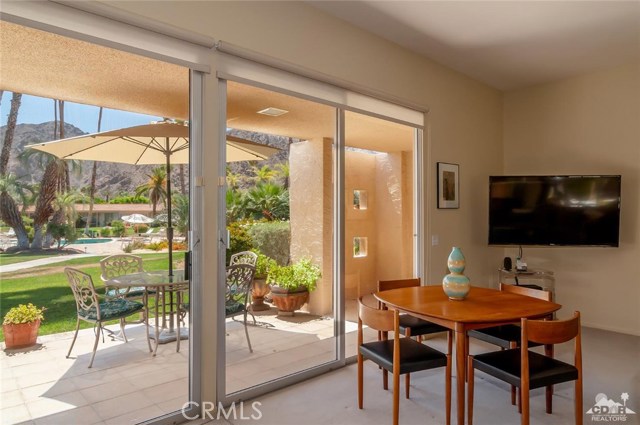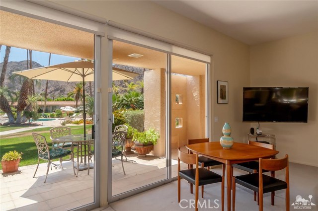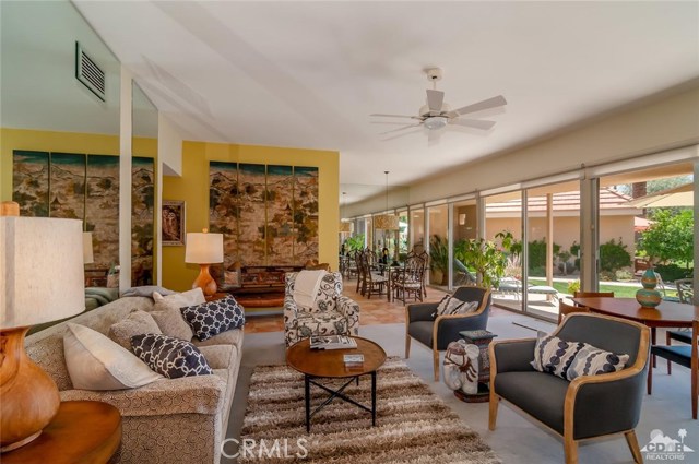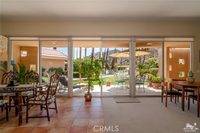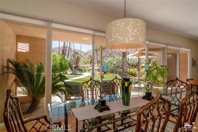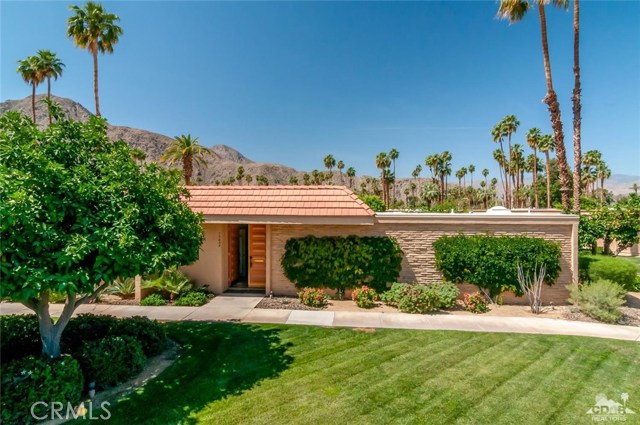Indian Wells Country Club! Mountain Views! Mid-Century! Designer Furnished! The 2 bedroom/ 2-bathroom mid-century home features terrific mountain views from the floor to ceiling glass doors. The open popular floor plan is spacious with lot of natural light along with high ceilings that opens to the entertainment back patio. The kitchen offers lots of storage and cooking areas to entertain family and friends. Two oversized master bedrooms open to a private walled courtyard. Full time, part time or investor this is a must see home. Indian Wells offers residents lot of benefits including discounted golf & dining along with gym membership at the Grand Hyatt. Close to the all popular BNP Paribus Open in Indian Wells California.