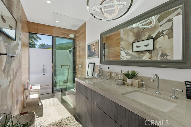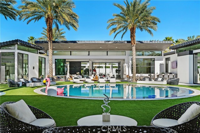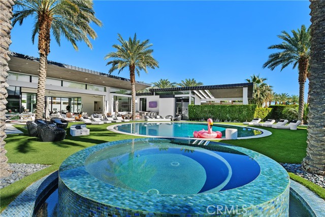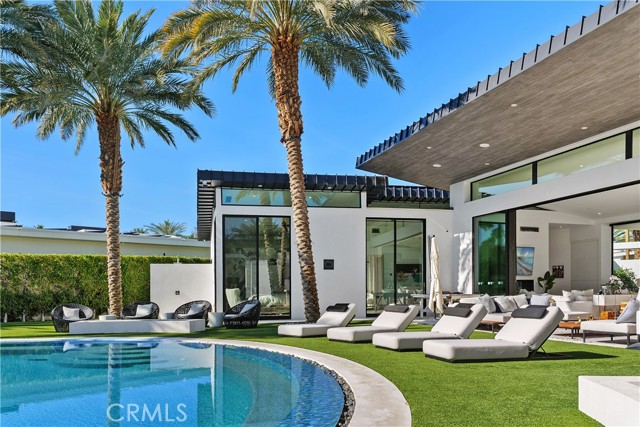 Introducing 8 Makena, An Architectural Masterpiece that is the premiere trophy property in the development that blends futuristic design with mid-century modernist aesthetics, inspired by the legendary architect Joseph Eichler. Dubbed the "Desert's Iron Man House", this private, gated estate is an exclusive oasis for the most discerning clientele. Set on over half an acre of meticulously manicured grounds, this 4,702-square-foot marvel offers a one-of-a-kind living experience in the prestigious enclave of Rancho Mirage, just moments from the fine dining and luxury shopping of El Paseo. With soaring ceilings up to 20 feet, floor-to-ceiling glass walls , no interior steps , limestone flooring throughout and expansive free flowing open spaces, this home captures 270-degree vistas of the stunning Santa Rosa Mountains, bathing the southwest-facing outdoor spaces in dramatic sunset views. The distinctive round arc reactor pool and expansive outdoor entertainment areas fulfill every desire, making this estate ideal for grand gatherings or intimate family moments. Inside, the residence boasts spacious living areas designed to entertain, including a luxurious primary suite with mountain views, a large walk-in shower, and a soaking tub. A separate, fully equipped casita adds a private retreat for guests or extended family, complete with its own kitchenette, bath, and outdoor living space. The home's strategic design harmonizes opulent indoor spaces the graciously tie in the outdoor living areas to be ONE, featuring a James Bond-worthy relaxation pavilion, bar, and barbecue area, perfect for the entertainer at heart. Whether lounging by the rim-flow pool, enjoying an outdoor shower, or relaxing in the suite's outdoor bath under the summer stars, this residence delivers an unparalleled experience. With a two-car garage, two-car carport, and close proximity to private jet charters, this estate offers the ultimate in convenience and luxury. 8 Makena is the epitome of architectural excellence, a world-class sanctuary ready to elevate any portfolio.