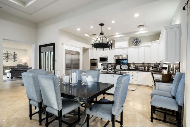Spectacular South-Facing Views Await at This Hideaway Home! Enter the tranquil courtyard to be greeted by a beautiful, tiled fountain as you make your way into this gorgeous 4,193 sq. ft. home. Offering three bedrooms and three and a half baths, including a separate casita, this home expands on a spacious 0.45-acre lot with incredible southern Santa Rosa Mountain and lake views, as well as views of the 13th green and 14th fairway of the beautiful Pete Dye course. Whether you entertain in the formal living room, adjacent to the kitchen, dining room, and a large family room with a cozy stone fireplace, or you take the party poolside, this home invites relaxation and serenity. The gourmet kitchen is complete with a center island, stainless steel appliances, and a breakfast nook. The large primary suite features double vanities, a luxurious bath, and dual closets. Wood flooring throughout complements the travertine finishes and makes the home warm and inviting. The outdoor entertainment area has a covered patio, outdoor dining, a covered BBQ, and beautiful stone flooring. The custom pebble tech pool invites you to jump on in while the raised spa welcomes you to unwind after a long day. Offered furnished per inventory. Golf membership is available with the purchase of the home.