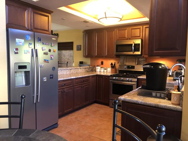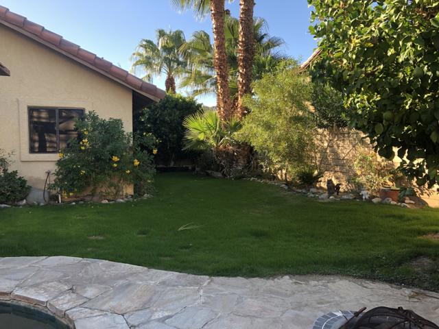 Wonderful turnkey furnished rental in popular South La Quinta. Close to Indian Wells Tennis Gardens, shopping, Old Town, fine dining, hiking trails, golf and La Quinta Arts Festival. Three bedrooms, all upstairs, 2.5 baths. Master suite has Cal king bed, new vinyl wood flooring, newly remodeled bathroom w/jacuzzi tub, shower, dual sinks and balcony overlooking the backyard. Second bedroom has Cal king bed, third bedroom has bunk beds and trundle bed that can sleep four. Remodeled full bath. Open concept living and dining room with cathedral ceiling. Remodeled kitchen with counter bar, eat-in kitchen overlooking the beautiful backyard. Cozy family room with fireplace, powder room and inside laundry. Fantastic entertaining backyard with pool and spa, bbq, tiki hut for sitting around enjoying family and friends. Attached two car garage. Rent includes water, cable and wi-fii, tenant to pay gas and electric. Rates are Jan-Mar $4,800/mo, April $6,500, May-Dec $3,500/mo.