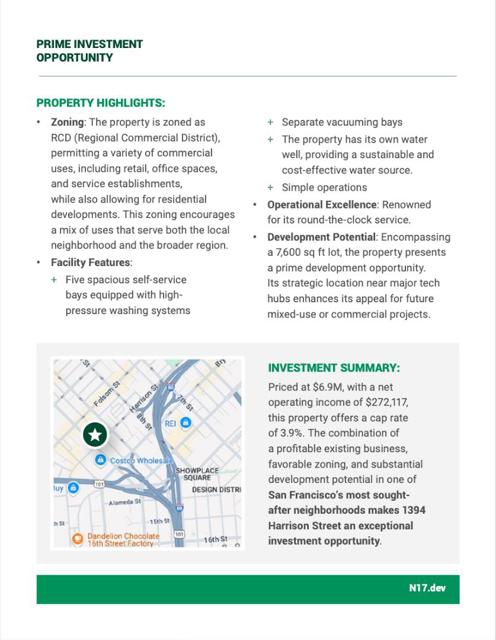 Unique opportunity to acquire a well-established, 24-hour self-service car wash facility, complete with its own water well, at the bustling corner of 10th and Harrison Streets in San Francisco's vibrant SoMa district. The property presents strong potential for immediate revenue generation as well as future development opportunities.