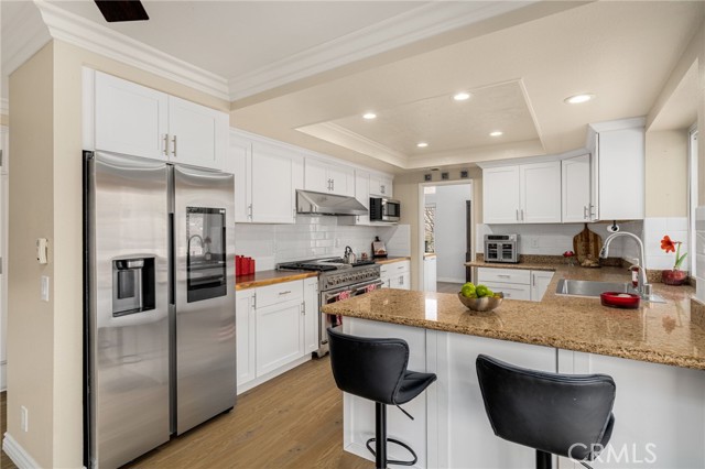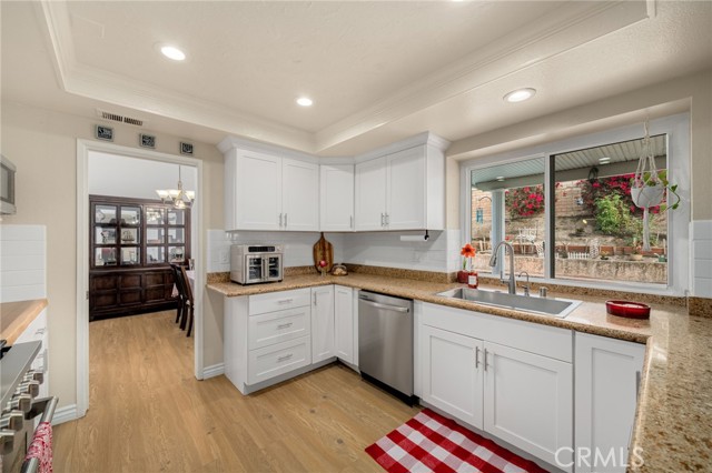Welcome to this beautifully designed pool home in the highly sought-after La Mirada community, where comfort, functionality, and timeless charm come together. This spacious 4 bedroom, 3 bathroom residence is thoughtfully designed to accommodate both growing and multi-generational families. The flexible floor plan includes a convenient downstairs bedroom and full bath ideal for guests or extended family. Enjoy multiple living spaces, including a formal living room and a warm inviting family room perfect for everything from quiet evenings to lively gatherings. A striking double sided fireplace creates a cozy ambiance enjoyed from both the living room and the sunken conversation pit, an ideal setting for game nights or entertaining. At the heart of the home the chef’s kitchen shines with a 6-burner stove, double ovens, and generous counter space making it perfect for everyday meals and hosting with ease. Three fireplaces throughout the home add character and warmth, while the expansive primary suite offers a peaceful retreat complete with city views and a private balcony, perfect for morning coffee or evening relaxation. Step outside to your own private backyard oasis featuring a sparkling pool, spa, fire pit and a spacious yard with edible landscaping, including avocados, tomatoes, cucumbers, corn, limes, and more. Whether relaxing poolside or entertaining friends and family, this outdoor space is both vibrant and versatile. A large side yard offers additional flexibility ideal for extra storage, gardening, or creating a customized outdoor space to suit your lifestyle. Additional highlights include a generous 3 car garage with a built-in storage lift for convenient access to storage and seasonal items. Ideally located within walking distance to La Mirada Golf Course, parks, and top-rated schools and offering access to community amenities such as a pool and tennis courts, this exceptional home blends everyday convenience with a true sense of lifestyle. Ready for its next chapter, this home invites you to create lasting memories. *Some photos are enhanced or virtually staged*