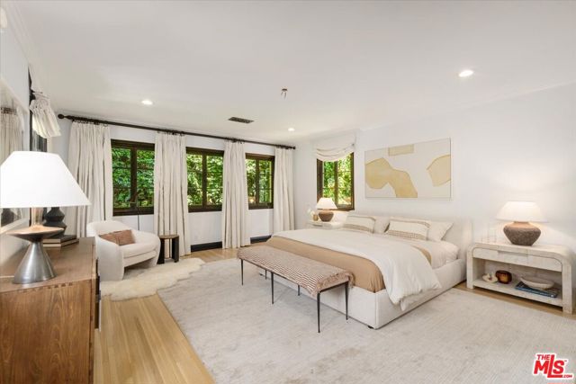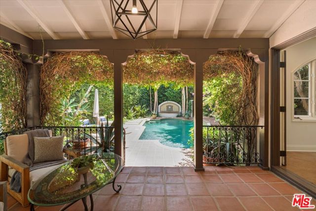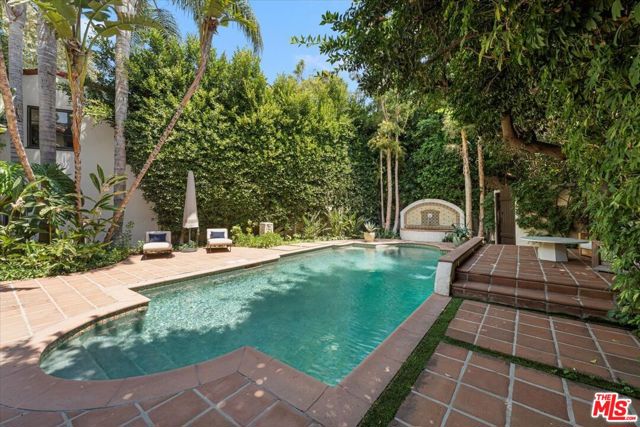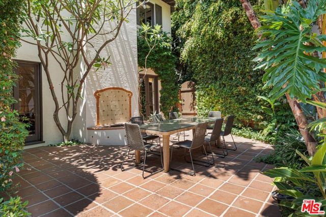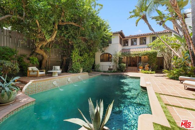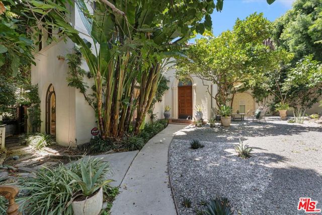 Major Price Reduction! Come check out this gem. 7040 Hillside is a piece of Hollywood's golden era. This Spanish Revival beauty was designed in 1925 by architect-to-the-stars, Marshall P. Wilkinson and lovingly updated for modern living. Walled and gated for privacy, this home exudes quiet elegance. Enter into a soaring two-story foyer with painted beamed ceiling and the first of the beautiful wrought iron work featured throughout. The generous step-down living room offers a wood burning fireplace and French doors to the stunning back patio. The dining room is separated by columned arches. The kitchen features top of the line appliances, Wolf, Sub-Zero, Bosch. Upstairs, the large, airy primary bedroom offers abundant light and a beautifully appointed en suite bath. The second bedroom suite offers a separate lounge room. A shared bathroom serves it and the third bedroom, currently used as an office. A small downstairs room can be a wine cellar or small gym. The spectacular back patio features a classic pool, surrounded by lounging areas, fountains, outdoor dining, and a built in fire pit. The mature surrounding landscape offers utmost privacy. This is a true sanctuary in the heart of the busy city, convenient to everything yet feeling a world away. Welcome home! (Be sure to click on the Virtual Tour and Property Website buttons above.)