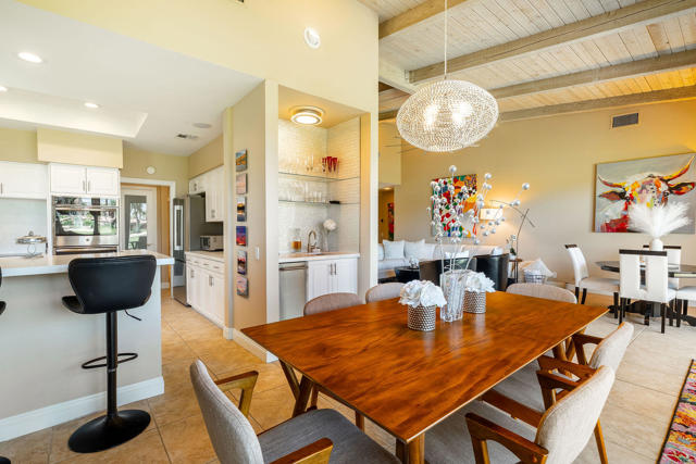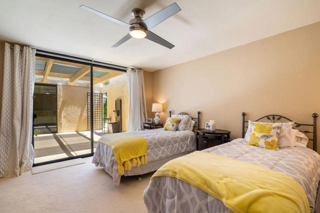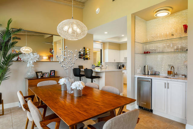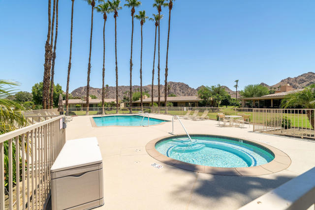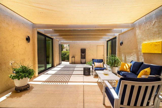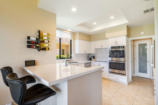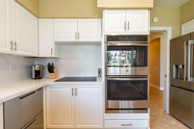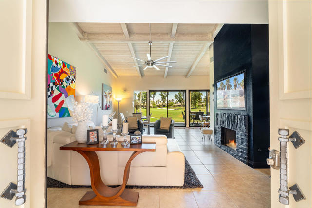 Prime location for this exquisitely updated ready to move into, turnkey furnished condo in the Indian Wells Country Club! The striking furniture reflects the modern contemporary design of this newly upgraded condo. Location is key on the golf course with lighted mountain views. 3 bedrooms, 3 bath condo with an open view of the 18th Green of the Cove Course. Definitely one of the best views in the prestigious IWCC. 2 AC units and 2 water heaters. Newly remodeled kitchen with new refrigerator, newly installed double dishwasher; Quartz Counters and new pantry. Dual-pane sliders and windows throughout. Bar with icemaker and deep sink. Gas fireplace in the living room. Newly installed fans, lights and speakers throughout. New carpet in bedrooms. Bathrooms with double sinks and showers. Indoor laundry. Misting System on back patio. 2 car plus golf cart garage with epoxy floor and insulated garage door. No stone unturned with this upscale remodel. Club membership is optional with several types of memberships. A member can take a short walk or ride to The Cove Clubhouse for Happy Hour or dinner. Enjoy the heated pool and spa nearby. Immediately enjoy the Indian Wells City Perks with discounts on restaurant, golf, usage of Fitness Center at the Hyatt and free BNP Tennis tickets. This condo will not disappoint. Move in and enjoy life!!