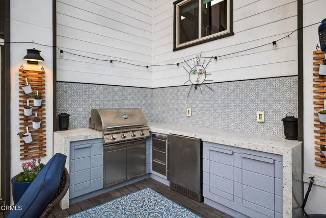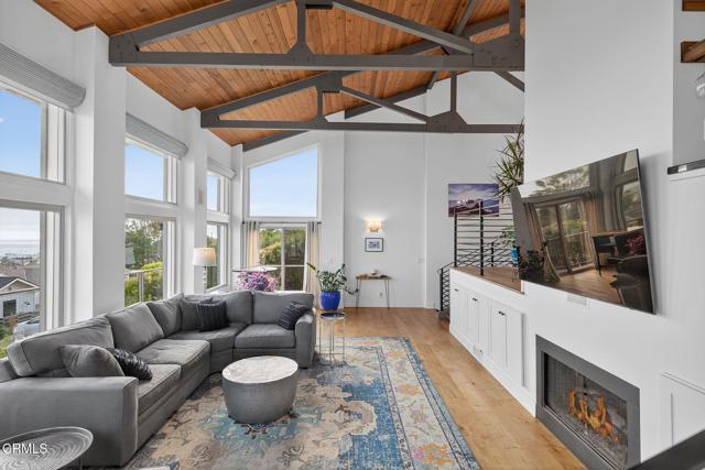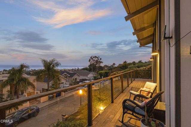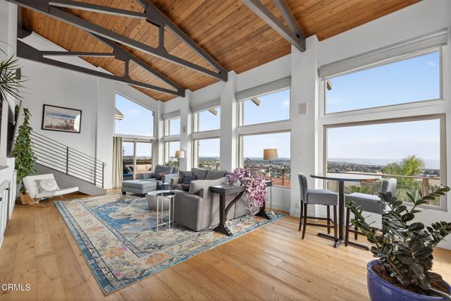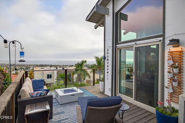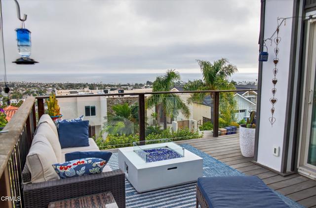 Unobstructed Ocean Views | Expanded Living Space | Ventura Heights Perched in the prestigious Ventura Heights neighborhood, this beautifully remodeled hillside home captures sweeping 180-degree views of the ocean, Channel Islands, pier, and mountains from nearly every angle. Thoughtfully expanded, the home now offers four bedrooms, an office, and three full bathrooms, including a stunning new lower level with a spacious bedroom, office, and full bath--ideal for multigenerational living, guests, or a private work-from-home retreat.Upstairs, the main level boasts a light-filled living room with vaulted, beamed ceilings, oak plank floors, and floor-to-ceiling windows that frame postcard-worthy sunsets. The primary suite features its own ocean-view deck, fireplace, and a spa-like bath with a soaking tub and oversized shower. Two additional bedrooms are connected by a cleverly designed Jack & Jill bath with dual vanities and privacy doors.Outdoor living is exceptional, with a beautifully landscaped backyard complete with a built-in BBQ, firepit, and view terrace, perfect for entertaining or unwinding. Off the living room, an additional outdoor kitchen with BBQ and refrigerator extends your hosting space, all while enjoying panoramic views from the front deck. Upgrades include a newer roof and HVAC. Nestled near the end of a quiet cul-de-sac among newly built homes, this residence combines timeless design, modern convenience, and unparalleled views in one of Ventura's most coveted hillside enclaves. Backyard also offers fruit trees including peach, dwarf avocado, fig and Santa Rosa plum in addition to the amazing views! The garage has an EV charger and new epoxy floors too. See floorplan and video too!