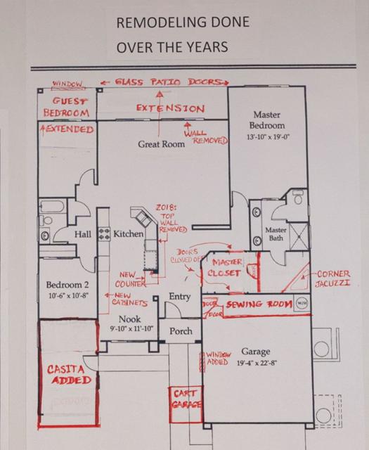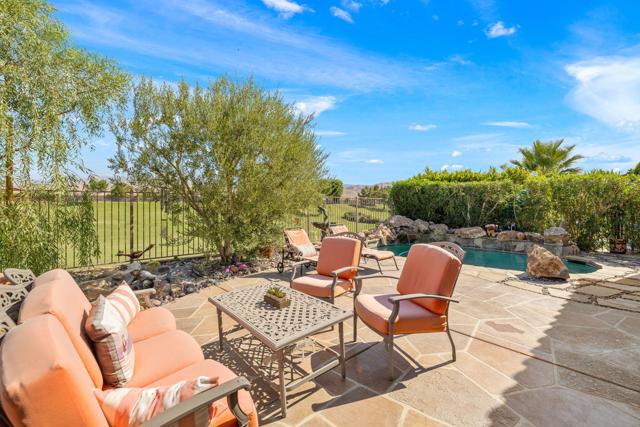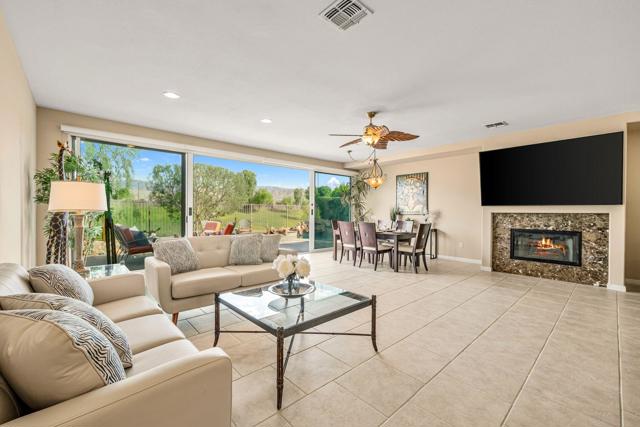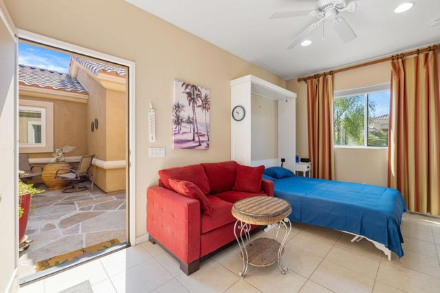 55+ Del Webb Sun City Palm Desert--The Best ''Bang for your Buck'' in the Coachella Valley! Introducing a truly MAGNIFICENT redesigned and reimagined home that will make all your dreams come true! The impressive unique design merges the indoor and outdoor entertaining lifestyle to perfection. This impeccably upgraded 4 bedroom/3 bath POOL home, with additional fully extended guest CASITA (rental income), features super open concept (wall removed), beautiful tile t/o, custom gas fireplace, all new windows in 2018. SOLAR is leased, whole house water filtration system, HVAC 3 years old, Mini-split in casita and laundry room. WOW!!! Chefs crafted gourmet kitchen includes large flat island with gorgeous quartz counters, subway glass backsplash, stainless double ovens, and kitchenette area with a view. Living room and dining room has been extended 6 feet with new floor-to-ceiling sliding glass doors, opening to the spacious private backyard, GREENBELT, and new sparkling salt water pebble-tec SPOOL/SPA with waterfall and meandering river. Extended master bedroom, bathroom has been uniquely designed to include private luxurious bathtub/jacuzzi. Guest bedroom #1 is extended with views of the patio and pool. Guest bedroom #2 can double as an office/work-out/den space. Extended casita features murphy bed, full bath with tub, washer/dryer, refrigerator, kitchenette. Spacous laundry room. Golf cart garage was added as the icing on the cake! This stunning home is ready for fabulous entertaining!