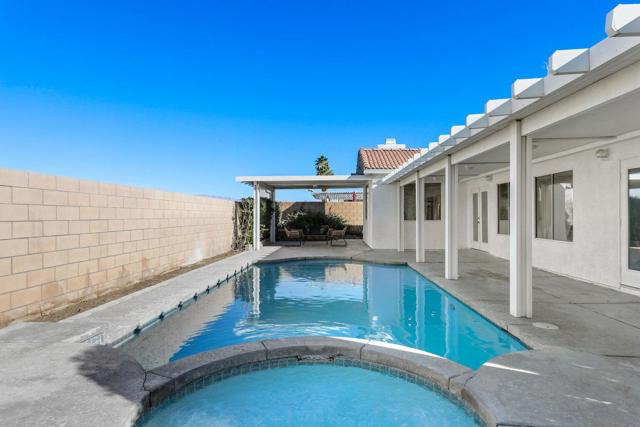 This newly remodeled 4-bedroom, 2-bathroom home combines modern style with everyday convenience. Inside, you'll enjoy open, airy living spaces filled with natural light, a sleek kitchen with updated appliances, and tasteful finishes throughout.The backyard is your own private getaway, complete with a pool and spa--perfect for entertaining or unwinding under the desert sky. With solar panels installed, you'll also benefit from energy efficiency and reduced utility costs.Best of all, this property is ideally located just minutes away from the Acrisure Arena, El Paseo's upscale shops and restaurants, as well as top schools, parks, and local attractions. A rare opportunity to experience the modern desert lifestyle at its finest!