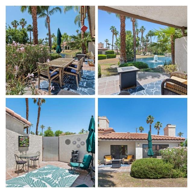 AVAILABLE SEP, OCT, NOV, DEC: Wonderful community amenities. Located in the heart of Palm Desert, this home is a very short distance (10 Minutes) from Acrisure Arena, the new home of the Firebirds minor league hockey team. The arena will host 40 hockey games plus over 140 other events, such as concerts. This property is also a short distance (8 Minutes) from the newly announced development 'Cortino' by Disney. The project will boast a retail/commercial/restaurant complex, an open to the public 24 AC lagoon, 400 hotel rooms and upscale homes. With all of these venues and activities, this home is ideally located for the renter or buyer. The property is being offered as 'move-in ready' and furnished. Best view and location in the Park Palm Community! Absolutely relaxing watching the duck, egrets, herons, and Canadian geese which are attracted to the water features. Private patio in front entry, tiled throughout the kitchen, living and dining room, carpeted in the bedrooms. The master bedroom has an ensuite. Spacious patio overlooking the water features (ponds, waterfalls, fountains), close to club house and main pool. Lots of natural light throughout the home. Price varies by time of year and length of stay! May-December at 2700- Call us for Season RATES (4500-6000)