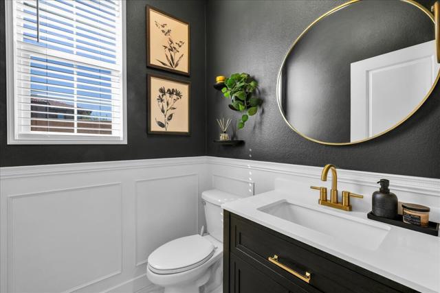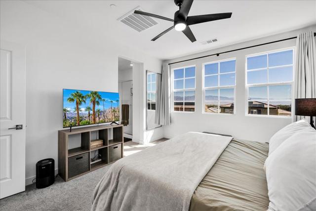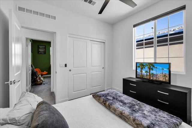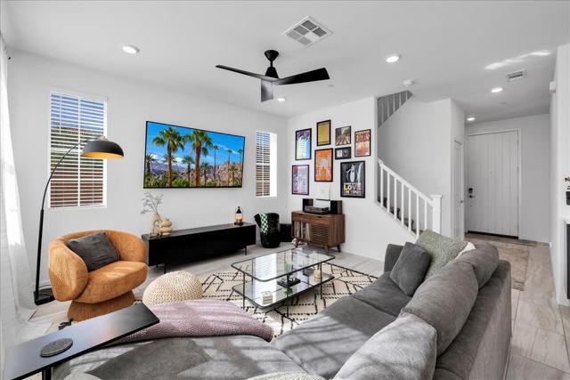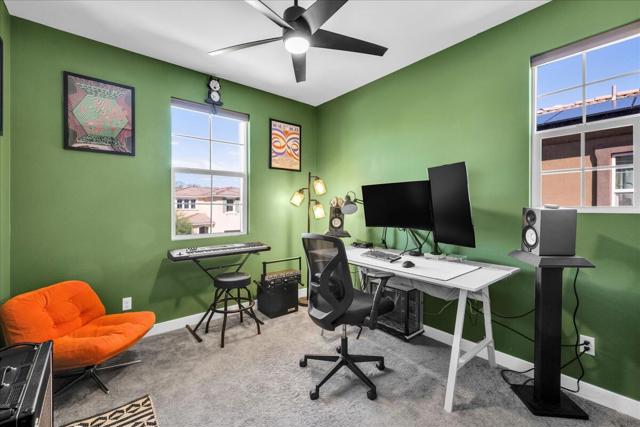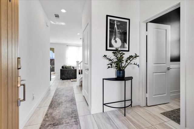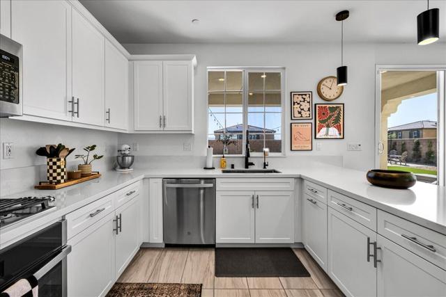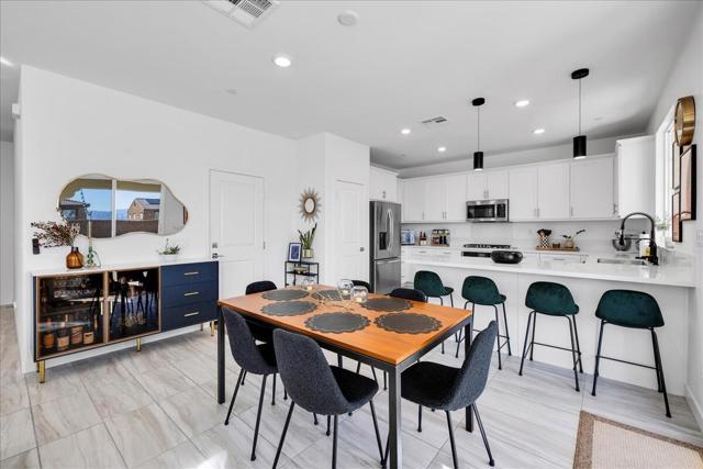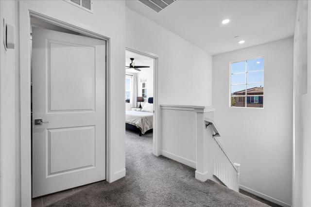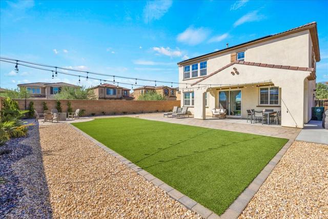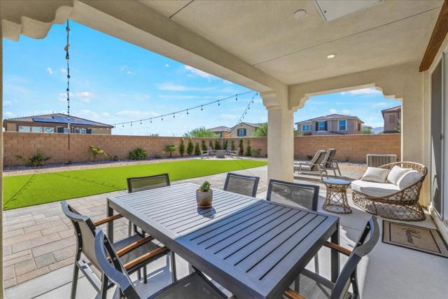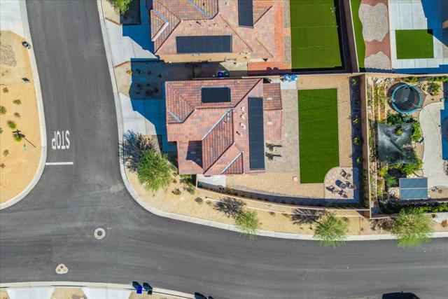 The gated Dolce community was built in 2023. This home is situated on a beautiful large corner lot. Two story home featuring 3 bedrooms, 2 bathrooms, and a powder bath. Bonus flex loft space located on the second floor. Upgraded interior flooring. Stainless-steel appliances, quartz countertops. Ample counter space, storage and pantry. Reverse osmosis filtration system in kitchen. Tankless water heater. Owned Solar Panels. Backyard features pavers, a beautiful turf area and poured concrete slab on the side of house. Vented second story dedicated laundry room. Low HOA fees.