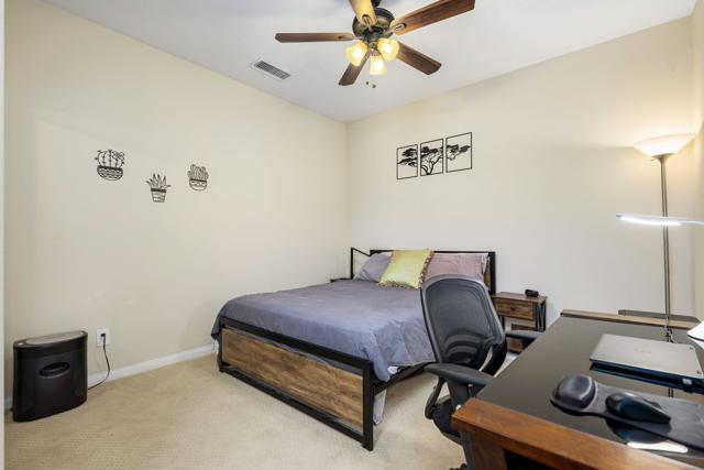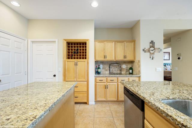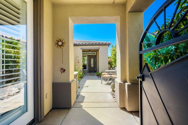 RENTED 2-1-2026 thru 4-30-2026. Welcome to your dream retreat just off the 18th Tee at Trilogy La Quinta! This stunning west-facing oasis, complete with a charming Casita, offers a resort-style backyard that's perfect for entertaining or relaxing. Picture yourself unwinding in the pebble-finished spa, enjoying the tranquil sound of the rock waterfall, or grilling up a feast at the fully equipped BBQ island. With panoramic views of the mountains, lake, and golf course, your evenings on the shaded patio will be nothing short of magical. Step inside this 1,806-square-foot single-level gem to find three spacious bedrooms, three luxurious baths, and a great room designed for comfort with a cozy tile-encased fireplace and custom built-ins. Recently updated flooring throughout the home. The primary suite is your personal sanctuary, featuring plantation shutters, private patio access, a walk-in closet, and a spa-like en suite bath. The gourmet island kitchen, open to the dining room, boasts granite countertops, a custom backsplash, stainless steel appliances, double ovens, and ample cabinetry--everything a chef could desire. The attached Casita, with elegant wood flooring, provides the perfect haven for guests, ensuring comfort and privacy. An extended 2-car garage, all new Milgard windows, upgraded carpets, ceiling fans, and automatic sunshades complete the package, making this home a perfect blend of luxury and functionality.