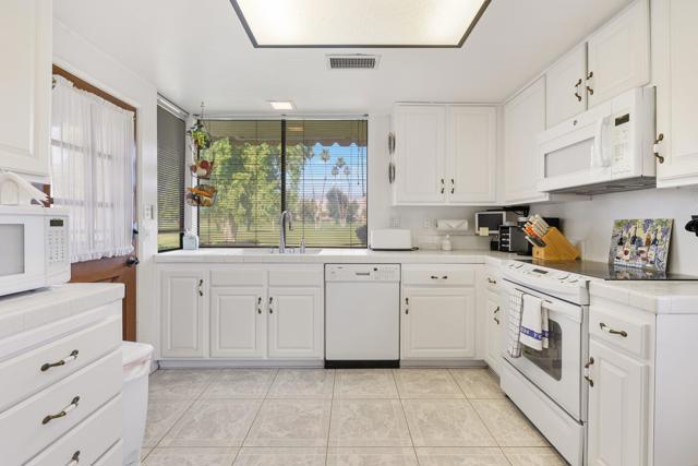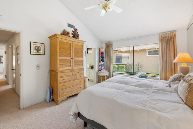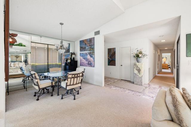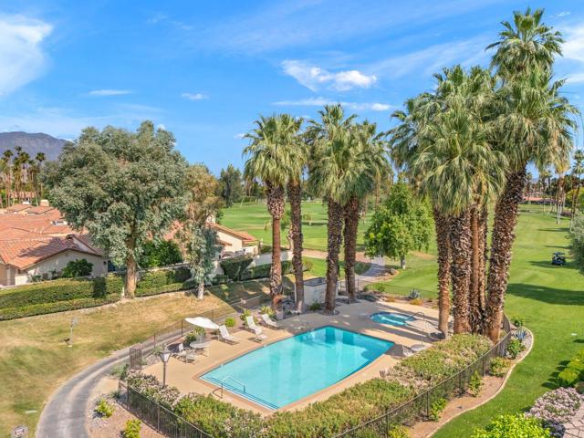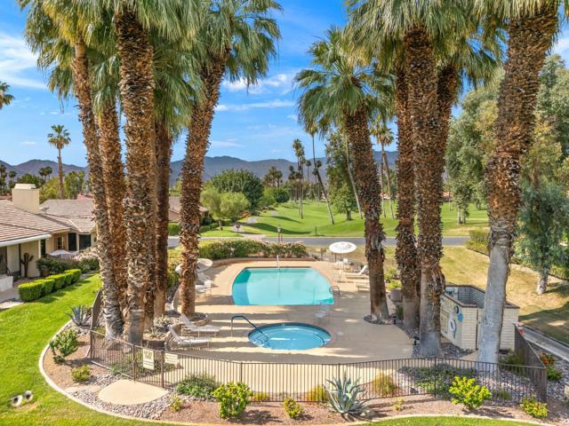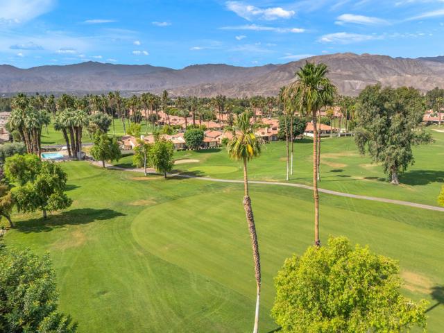Incredible value and opportunity! Beautiful mountain and multiple fairway VIEWS from this 1584SF, 2BD+Den/2BA, 30 Plan with huge potential. Fantastic interior location on the 9th hole of South course, and just a short walk or golf cart ride to the clubhouse. Spacious living areas, high ceilings in living room and primary bedroom, neutral carpet & paint, gas fireplace, dry bar, updated hardware in baths, individual laundry room, and large 2-car garage with additional storage. New AC installed July 2025! 27 holes of Ted Robinson designed golf, 13 tennis courts, 20 pickleball courts, bocce, and 37 pools for your enjoyment. Centrally located in the heart of Palm Desert, Monterey CC is one of the most active clubs in the desert. Note: Annual golf course overseeding in progress. Course will be lush & green by November.