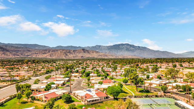 Step into this beautifully reimagined contemporary condo nestled in the sought-after enclave of Casablanca in Palm Desert. A masterful renovation brings out the best with modern finishings, offering today's homeowner a perfect blend of sophistication and comfort. Inside, expansive walls of glass frame a premium lot and open to an elevated, enclosed patio--ideal for seamless indoor-outdoor living. This stylish residence features two bedrooms, two bathrooms, and an open-concept den/study (currently being used as a billiards room). The remodel showcases sleek tile flooring throughout, a newer A/C system, and dual-pane windows. The oversized two-car garage includes an epoxy floor and extra storage space. The kitchen is a chef's dream, complete with stainless steel appliances, custom cabinetry, and quartz countertops with a peninsula bar for casual dining. The spacious master suite opens to a large patio with great desert views. Whether you're relaxing indoors, stargazing from the patio, or exploring nearby shops and restaurants, this home offers the ultimate desert lifestyle. Located in a gated community featuring four swimming pools and both pickleball and tennis courts, this one-of-a-kind property is not to be missed!