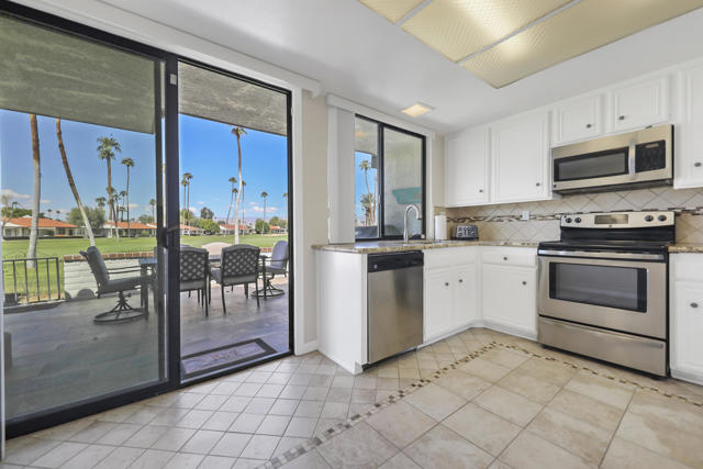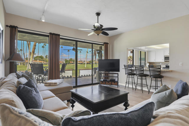 Location! Location! Location! This 2 Bedrroom condo has an amazing location. Located close to the front entry, Omni Resort and Clubhouse, it is at the end of a private cul-de-sac with the pool and spa directly across from the condo. A private courtyard leads to the double glass door entry. An opan floor plan has the the wall from the kitchen to the living area creating and very open flow. The kitchen features granite slab counters, recessed lighting and stainless steel appliances. The BEST part is the expansive double fairway view of both the 9th fairways or the South and West Courses with the Mountains and Clubhouse in the backfrop.