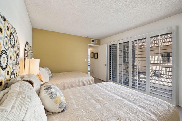 NOW ALL AVAILABLE ALL MONTHS. Turnkey Furnished! Curb appeal describes this plan 200 beginning from the street as you enter through the private, beautifully landscaped, enclosed courtyard to your own private retreat. The panoramic views of the golf course, single-level 2 bedrooms/2 bathrooms condo makes a perfect winter getaway. The living room features an oversized sliding glass door that brings ample natural light and provides easy access for indoor/outdoor living. The living room and dining area boasts vaulted ceiling with clerestory windows, making this unit light and bright. The primary en-suite bath has dual sinks, 2 closets and direct access to the bright and sunny patio, second bedroom with slider door leading to south facing courtyard patio, inside laundry, planation shutters, and double car garage. The kitchen and both bathrooms are updated, laminate flooring and open concept living! Enjoy the fabulous lifestyle the desert has to offer and experience gorgeous views from the enclosed extended back patio, perfect for entertaining! Start enjoying the Resort lifestyle at Monterey Country Club, with 27 holes of championship golf, 19 Tennis and Pickle Ball courts, Fitness Center, and 37 community pools and spas. Conveniently located close to The El Paseo Shopping District, The Shops at Palm Desert & Acrisure Arena