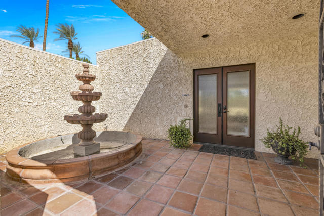 Welcome to your dream desert getaway! This gorgeous, fully furnished 4-bedroom, 4-bath home with a spacious family room and 3-car garage offers the perfect blend of elegance, comfort, and resort-style living. From the moment you arrive, you'll be captivated by the private entrance highlighted by a dramatic water fountain, setting the stage for the luxury that awaits inside.Step into the grand living spaces where marble floors flow seamlessly throughout the main areas, creating an atmosphere of timeless sophistication. The home features two cozy fireplaces, a stylish wet bar, and soaring ceilings, all designed for both relaxing and entertaining. The gourmet kitchen is a chef's delight, featuring sleek stone countertops, double ovens, a wine cooler, an abundance of cabinetry, and top-of-the-line stainless steel appliances. Whether you're preparing an intimate dinner or hosting friends and family, this kitchen delivers in both function and style.Details throughout the home elevate the living experience--plantation shutters, ceiling fans, and flat-screen TVs in every room provide convenience and comfort at every turn. The bathrooms are designed as spa-like retreats with stone countertops, glass vessel sinks, and skylights that invite natural light.The luxurious primary suite offers the ultimate escape with a spacious walk-in closet featuring custom built-ins, and a lavish bath complete with spa tub, double sinks, skylight, and a separate shower.Step outside to your private backyard oasis, where a sparkling pool, ample lounging space, and lush landscaping create the perfect setting for outdoor living. All of this is framed by sweeping mountain views that remind you why desert living is truly unmatched.Ideally located close to shopping, dining, and world-class entertainment, this property is more than just a home--it's a lifestyle. Experience luxury desert living at its finest!