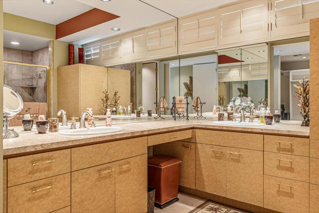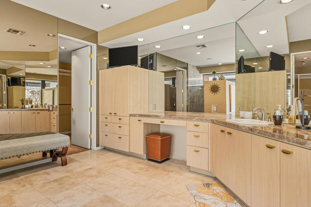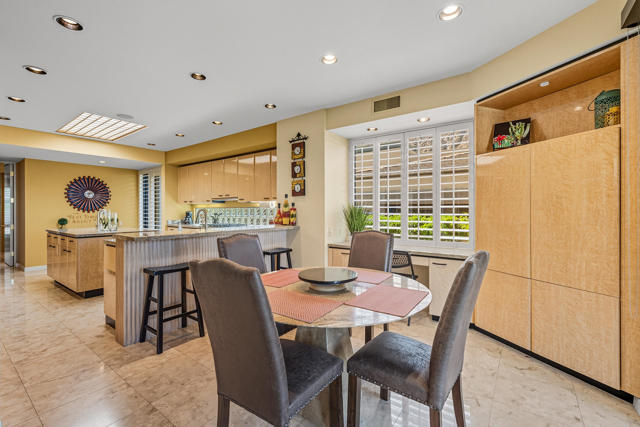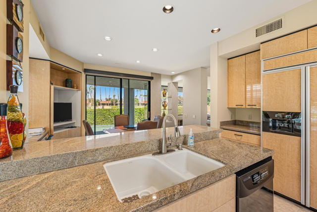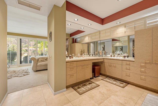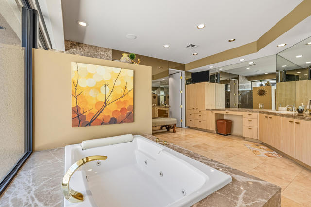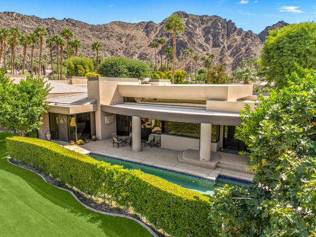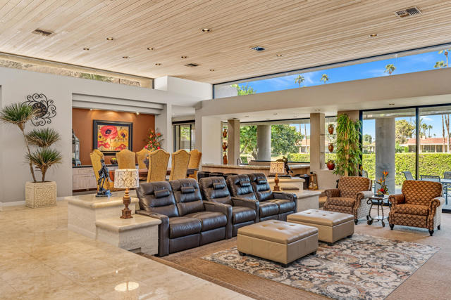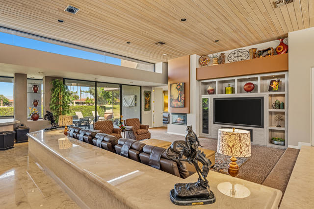 Gorgeous furnished home within prestigious Cove Pointe Circle community with easy access to Indian Wells Country Club. Breathtaking mountain views located on the 16th Fairway of the IWCC Cove Course. Home has 3723 Sq.Ft. Interior Living Space, 3 spacious Bedrooms, 3 ensuite Baths, Great Room with clerestory windows, walls of glass, large Wet Bar, Formal Dining area, 2 fireplaces, 2 car plus golf cart garage with A/C, epoxy flooring, and tons of built-in storage. Home has its own private infinity lap pool! Expanded covered patio with built-in BBQ for the best of indoor/outdoor living. Beautiful, dramatic high ceilings with awesome fairway and mountain views as you enter from the large foyer. Polished marble floors throughout, carpets in bedrooms and Great Room with elegant wood paneled ceiling, fireplace, and big flat screen tv with custom cabinetry. Palatial Formal Dining area has built-in black granite countertop buffet for wonderful entertainment. Wet Bar features granite countertops, wine cooler, bar refrigerator, and icemaker. Gourmet Kitchen presents granite countertops, two separate sinks, big Kitchen Island, and outstanding high Kitchen cabinets for abundant storage. Primary Bedroom has fabulous mountain and pool views, and exquisite marble fireplace. Primary Bath has dual walk-in closets, marble countertops, dual sinks plus large vanity, big shower, and jet tub spa. Both Guest Bedrooms have walk-in closets and striking mountain views. Large Laundry Room with deep tub sink, and storage cabinets galore.