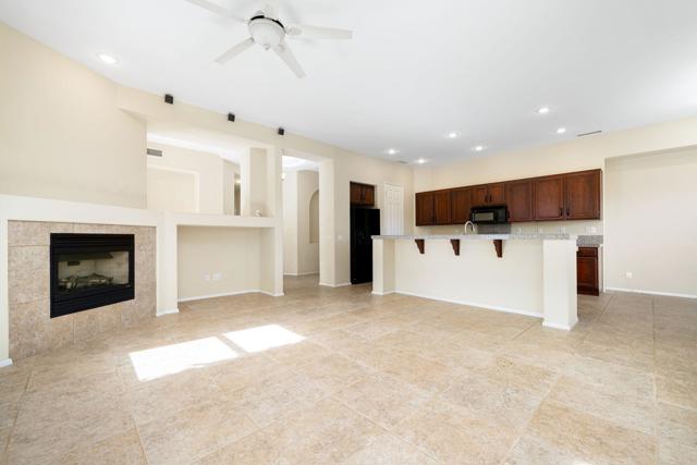 Lakefront with Spectacular Views, Great Curb Appeal, Popular Open Floor Plan and located near Mission Hills Country Club Sports Clubhouse with Tennis/Pickleball Membership Included. Enter through Gated Courtyard with outdoor living and mountain views. Entry Hall leads to Open Great Room with fireplace Kitchen and Dining area all with great views of the lake and fountain. Social Kitchen features granite counters and island with counter seating. Dining area and Entertainer's Bar overlook the lake views. Primary Suite has Retreat area overlooking the lake and Primary Bath featuring dual vanities with marble countertops, shower and a soaking tub. Extra large Primary Closet has custom built-ins. Guest Suite is like a casita with a slider to the courtyard terrace, an ensuite bath and walk-in closet. Second Guest Bedroom and bath nearby give room for friends and family or an office. Outside are expansive lakefront terraces for dining and living and courtyard with mountain views. Mission Hills Country Club Sports Membership included in HOA (tennis, pickle ball, croquet, gym, social). Great value at this price - come home to your lakeside desert retreat!