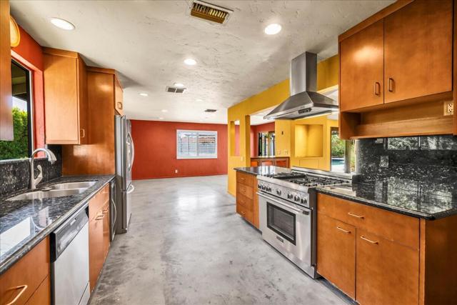 This large family home offers 3 bedrooms, 2 baths in 2282 square feet on an oversized 13,000+ square foot lot. Huge great room with fireplace and cathedral beamed ceilings, an eat-in kitchen with dining area and large family room that offers plenty of space to grow. The cook's kitchen offers granite counter-tops, stainless appliances, a four burner gas range/oven, with a TON of cabinetry. Inside laundry with direct access to a double car garage with additional storage. This gated property includes a courtyard entry to the home giving great privacy to the interior spaces. High-end upgrades include a standing seam metal roof, double pane doors and windows and custom window treatments throughout. The primary bedroom offers two closets (one walk-in) and a luxurious bath with soaking tub, walk-in shower and double vanities. A large south-facing window floods the primary bathroom with natural light. The oversized yard offers a pool and spa, grassy area and two storage buildings. Mountain views and mature landscaping complete the picture. FEE SIMPLE land. A coat of paint to this cosmetic fixer will result in a stunning home.