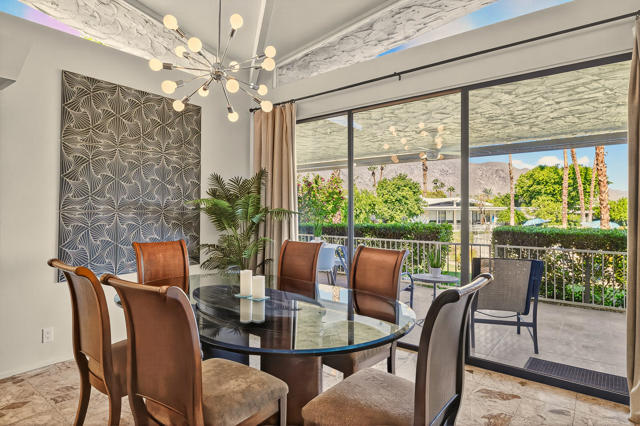 HUGE stately condo in PRIME South Palm Springs location. A very fresh and beautifully updated classic offers dramatic architecture, BIG mountain and greenbelt / pool views, 2 large bedrooms with ensuite baths, a LARGE den for overflow guests and access to a 3rd bath with shower. SWANKY sunken bar for entertaining, generous dining room AND large kitchen fitted with all the amenities. Laundry room! Oversized 2 car garage with NEW extra refrigerator. Entry courtyard, VERY LARGE back patio so you can relax and enjoy the stunning views. SO close to shopping (Smoke Tree) and restaurants. 3 minutes to Indian Canyons Golf courses or hiking. 6 or 7 minutes to downtown or PS airport. FIRST TIME available for seasonal rent!! This one is an A+