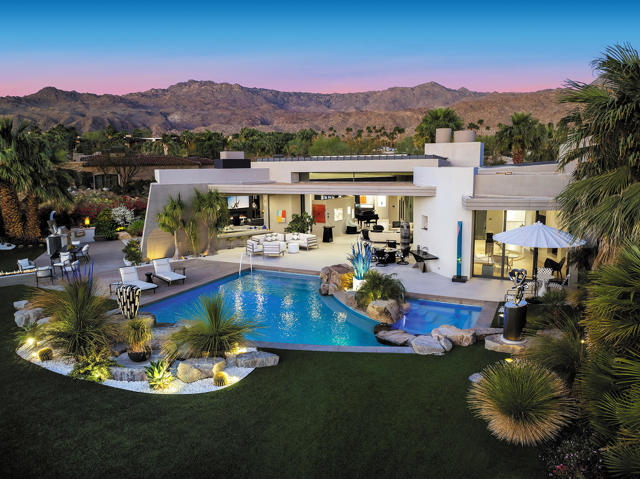 This beautifully remodeled contemporary home features 4 bedrooms and 4 1/2 baths. The moment you arrive in the motor court you can sense the grandness of these home. Entering the gated courtyard, you are greeted by a soothing water feature that runs along both side of the walkway. Once in the home you are mesmerized by the breath taking mountain vistas, and lush surroundings. The living area features upgraded lighting for art and pocket sliders leading the the entertainment patio, pool/spa and BBQ. The state of the art kitchen features the latest decor appliances for the chef inside you. The primary bedroom offers a private sitting area that is perfect spot for reading a book. The spa like primary bath features two water closets and two walk in closets, one of which is currently set up for Pilates. An office with views of the courtyard water feature and mountain views is a great spot to get some work in. The two interior guest suites feature full baths and walk in closets to keep you guest comfortable. The guest house off is located off the courtyard and feature a kitchenette, sitting area and fireplace. The home has been remodeled in the past two years including the pool and spa. The solar array is owned as well.