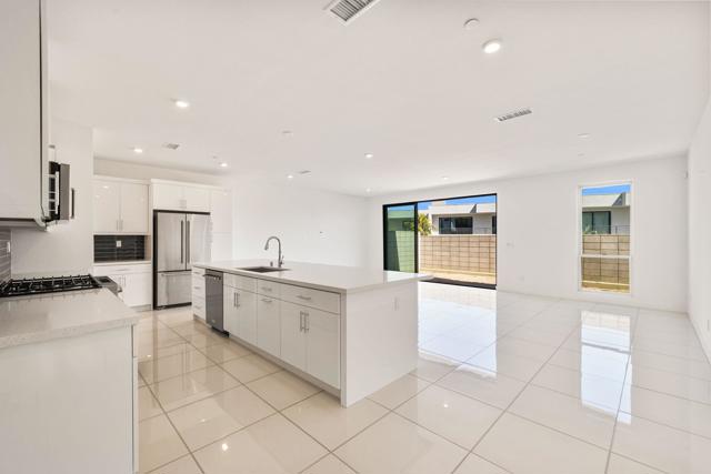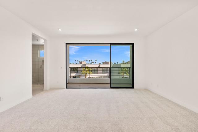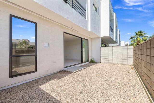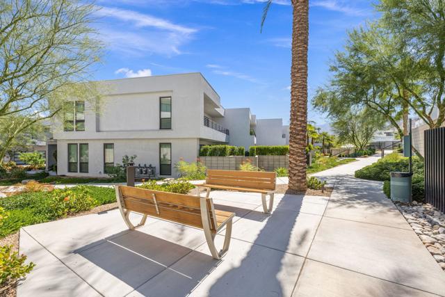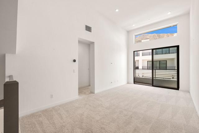 Discover the ultimate Palm Springs lifestyle in this exceptional condominium at Cody Place, a premier gated enclave just minutes from the heart of downtown. From this prime location, you'll be a few blocks from acclaimed restaurants, lively nightlife, and boutique shopping, all while enjoying the luxury of resort-inspired community amenities. This multi-level home is thoughtfully designed for modern living, offering an owned solar system, dual-zone HVAC for year-round comfort, and a finished two-car garage complete with epoxy flooring and EV charging. The chef-inspired kitchen features custom upgrades and a generous island, ideal for entertaining. On the main level, expansive custom tile floors and sliding stack doors open seamlessly to an outdoor living space awaiting your personal touch. A striking staircase leads to the second level, where a loft with dramatic clerestory windows frames west-facing mountain views. Perfect as a den, media room, or office, this flexible space is filled with natural light. The upstairs also includes a guest bedroom and bath, laundry room, and a primary suite showcasing views of Southridge, a spa-like ensuite, and a spacious walk-in closet. The crown jewel of the home is the third-level covered rooftop deck, designed for both relaxation and entertaining with panoramic views all around. The residence is also prewired for media and connectivity throughout. Cody Place residents enjoy exclusive access to a stylish clubhouse, two resort-style pools--one an Olympic-length lap pool--a spa, outdoor fire pit, and dog park. Combining energy efficiency with upscale design, this condominium offers an unparalleled leasing opportunity in one of Palm Springs' most sought-after communities. (Window coverings being installed 3/7/25)