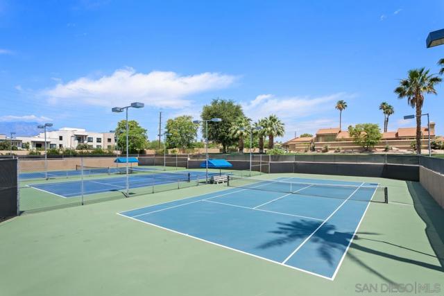 WELCOME TO SILVER SANDS RACQUET CLUB...a guard gated community with 256 homes located adjacent to the J. W. Marriott Desert Springs Resort and across from Desert Willow Golf Resort. The featured home is rare opportunity to own one of the homes that is freestanding (no common walls) furnished, 2 bedrooms, 2 baths, attached 2 car garage. Upgrades include remodeled kitchen, primary suit bathroom, floors and much more! Private side yard with access to one of the 15 community pools/spas. SSRC amenities include 7 tennis courts, 4 pickleball courts, fitness facility, 15 pools/spas, tennis pro on staff in season, clubhouse for social activities. HOA dues include roof, exterior maintenance, cable TV, internet, tennis, pickleball, trash removal and security. Silver Sands Racquet Club is definitely one of Palm Desert's BEST KEPT SECRETS. YOU WILL NOT BE DISAPPOINTED,