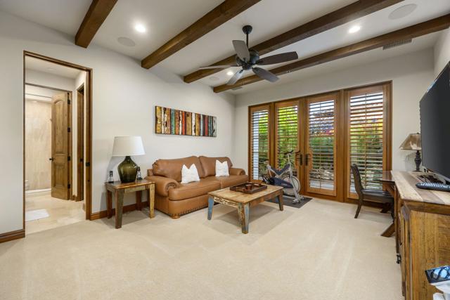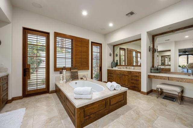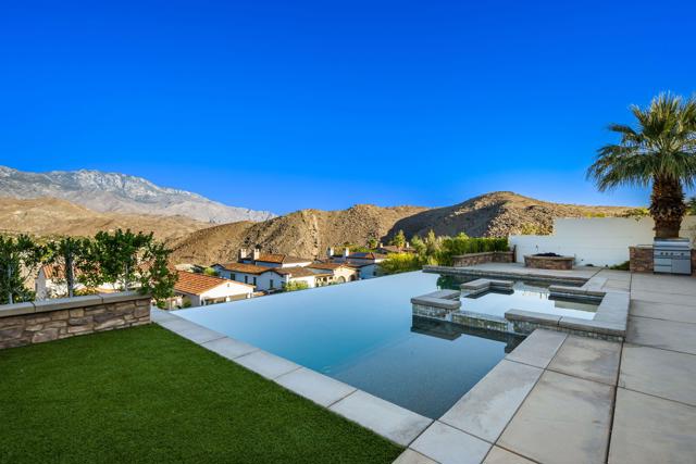 Everything you want in a home, plus privacy, quietude, and stunning across-valley mountain views. Set in sought-after Villas of Mirada, a charming, gated community nestled among the foothills of lovely Rancho Mirage, and central to everything. The spacious primary suite features a luxury bathroom, deep walk-in closet, and opens through pocket doors to a covered loggia with fireplace and breathtaking panoramas. A secondary suite has it all. And an additional, third bedroom suite shares a bathroom with a fourth bedroom set up as a customized-media-room/remote-working-office (with Murphy bed). A gourmet kitchen with sit-up island beckons, fully equipped with Wolf and Sub-Zero appliances. The open and light great room with soaring ceilings engenders a charming yet contemporary feel, with wall-spanning pocket doors, motorized blinds, custom Travertine floors, and beautiful hearth fireplace. And for total, all-season comfort, a four zone HVAC system awaits. The over-sized lot frames a large and attractive entertaining patio with pebble finish, infinity-edge pool & spa overlooking unparalleled, eye-popping vistas. A true Desert getaway, 43 Mount San Jacinto Circle offers tranquility days and sparkling night lights that amaze! Nearby, the prestigious Ritz-Carlton Hotel offers residents exclusive discount privileges.