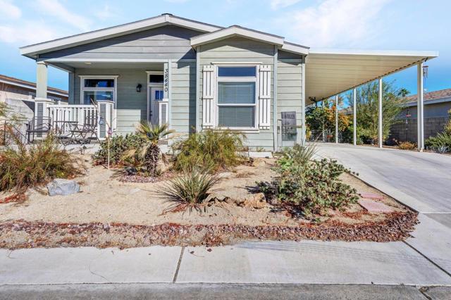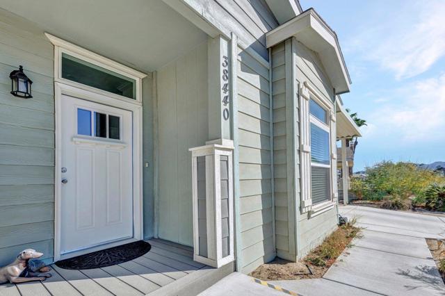 Built in 2017. 433A recorded. Mountain views. Gated golf community. This is one of the newest homes in Palm Desert Greens -- and it shows. Featuring modern construction, vaulted tray ceilings, crown molding, and an open-concept layout, this 3-bedroom home blends upscale finishes with desert charm. The kitchen? Fully upgraded with Corian counters, soft-close cabinets, Whirlpool appliances, and a center island designed to entertain. Enjoy stunning mountain views from the kitchen, great room, and private low-maintenance backyard with drip irrigation. The primary suite offers a large walk-in closet, step-in shower, and matching Corian vanities. Full-size laundry room with GE washer/dryer included. Already on permanent foundation with a 433A -- this home qualifies for FHA, VA, reverse mortgage, and conventional financing. Monthly HOA is just $400 and includes cable, internet, trash, security, and unlimited golf on the 18-hole executive course. Add in pickleball, tennis, pools, clubs, and RV parking -- and you've found the perfect 55+ lifestyle. Don't wait for an older home that needs work -- this one is move-in ready, stylish, and rare.