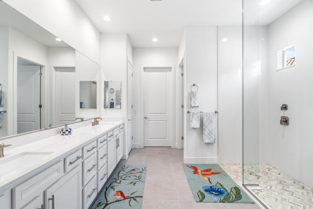Your Dream Desert Life Starts Here! This south-facing home is the popular Voyage Plan and it's absolutely ready for you--the current owners have already taken care of all the expensive, high-end upgrades you would want! As you step inside from your private front patio, you'll immediately notice the tons of natural light. Everything here feels high-quality and easy to live with, from the custom built-in cabinetry, to the fancy motorized shades and plantation shutters. The kitchen is truly a showstopper; it's a chef's dream with a huge island featuring a gorgeous quartz waterfall edge, top-of-the-line appliances, and all the storage you need in the soft-close cabinets and large walk-in pantry. The living area is cozy yet elegant, featuring a great room centered on a stylish fireplace with built-in storage on both sides, while the dining area offers a lovely view of the mountains. Need a quiet spot to work or manage bills? The den is perfect, set up with custom shelving, a desk, and storage. With three spacious bedrooms and three-and-a-half baths, there's plenty of room for family and guests. The primary bedroom is your private oasis, complete with a spa-like shower, double sinks, and two large closets! Out back, the yard is professionally finished and ready for entertaining. You'll especially love the elevated viewing platform--the perfect spot for evening cocktails and taking in those spectacular desert sunsets. Practical features include fully paid-off solar panels (a huge savings!) and an oversized garage that fits two cars plus your golf cart. Best of all, you get full access to the incredible Del Webb lifestyle, including a resort-style clubhouse, pools, fitness center, tennis, and pickleball. Don't miss this one--it's the perfect place to start living the good life! ** Photos have been virtually staged.
