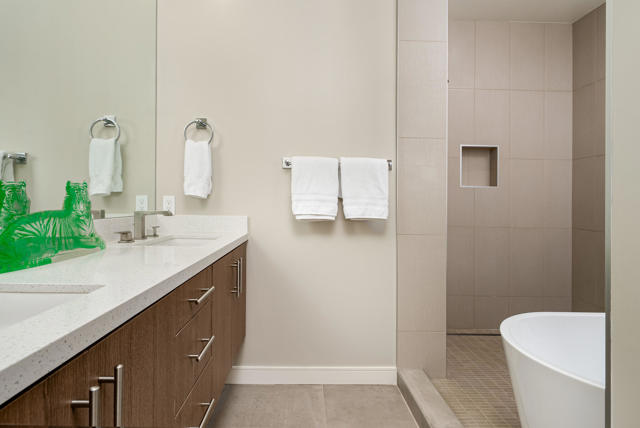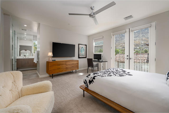 You're sure to be charmed by this recently built Historic Tennis Club home in St. Baristo Villas, where from numerous balconies you see both the City of Palm Springs and Mountains. Owing to its proximity to the exquisite resort-like Baristo Villas pool complex, these views are largely unobstructed. As you enter the front patio framed by Italian cypresses, you arrive into a formal entry where you can use your private elevator or take the elegant staircase leading to the main living area. If entertaining is to your liking, here you find a gourmet kitchen with sizable terrace, a breakfast area, and grand living room with adjoining dining area, all connected and on one floor. The kitchen boasts premium Viking appliances, handsome cabinetry, and a convenient island with bar seating-perfect for casual meals or entertaining guests. On the penthouse level, you enjoy a private balcony and a luxurious ensuite with double sized shower and bench. On the main level, guests will appreciate their own private retreat with oversized shower & standalone tub with window overlooking the pool.The superb location places you just steps from downtown Palm Springs' vibrant attractions, including the Palm Springs Art Museum and Forever Marilyn statue. After exploring the city, return home to relax by the beautiful resort-like pool, visible from your residence. This property offers the option to purchase the playful, colorful furnishings outside of escrow, allowing you to move in and immediately embrace the Palm Springs lifestyle.