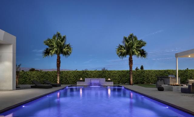 Residence Fourteen in Linea Rancho Mirage presents the essential qualities of desert resort architecture--providing a long central pavilion with a series of flexible living spaces throughout. Our interior design team created a warm environmental pallet of natural woods and bespoke black stone surfaces, producing a 'Zen like' ambiance with modernist intentions of space and light. The glass hallway to the master suite is emblematic of the classic indoor/outdoor connections throughout the residence to the surrounding desertscapes. A complete guest house reflects the same design elements as the main residence and can be utilized for independent living, a luxurious suite for visitors or accommodations for full-time staff.This 4,737 square foot 5 bedroom home is replete with luxury features and finishes: Wolf & SubZero appliances including a wine tower, Aranelli Italian cabinetry, seemingly endless facades of floor-to-ceiling Fleetwood glass, spa inspired main bath with steam shower, solar arrays and batteries, pebble finish salt water pool and more.A modern peaceful desert oasis like no other.