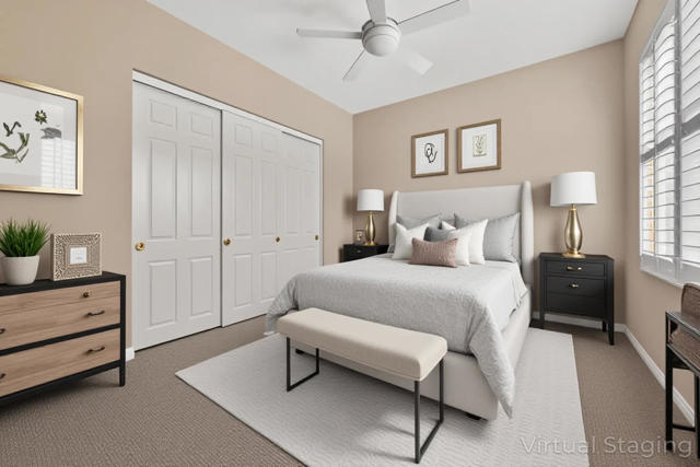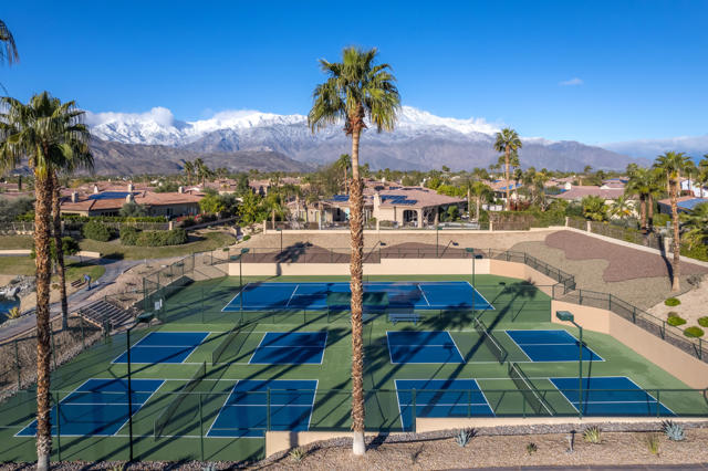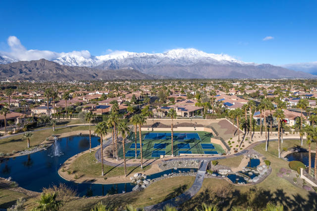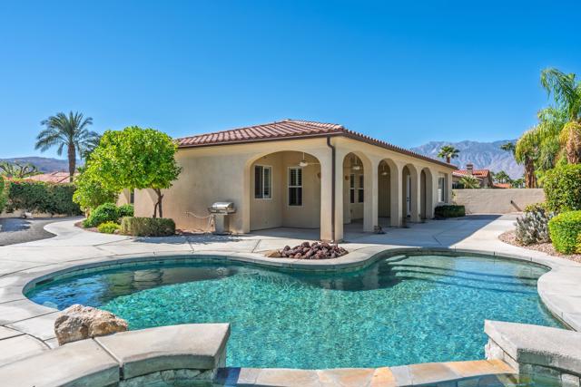Move-in-ready and Owned Solar-power, this beautifully maintained home in the gated community of St. Augustine offers resort-style desert living on an oversized lot with pool and spa. Light-filled interiors flow seamlessly to outdoor entertaining spaces framed by mountain views. With a great floor plan and prime Rancho Mirage location--this is the perfect retreat for full-time or seasonal living. Welcome to this desert retreat located inside the sought-after gated community of St. Augustine in Rancho Mirage. This move-in-ready home sits on an oversized corner lot offering exceptional privacy mountain views and a resort-style backyard designed for true desert living. Through the gated private courtyard step inside to an inviting open floor plan with 2 bedrooms, Office/Den and 2 bathrooms, high ceilings, natural light, and generous living spaces create an effortless flow between the great room, dining area, and kitchen. The kitchen features white cabinetry, granite countertops, stainless-steel appliances and a large island perfect for entertaining. The spacious great room showcases a custom fireplace and a french door that leads to the expansive outdoor living area. Outdoors, you'll find the ultimate entertainer's oasis--complete with a sparkling pool and spa, fire pit, multiple lounging areas, and mature desert landscaping that perfectly complements the home's architectural lines. The property's OWNED solar system keeps energy costs low year-round. The primary suite offers peaceful separation, new carpet, a spa-inspired bath, and direct patio access for seamless indoor-outdoor relaxation. The guest room is a nice size also with new carpet and the flexible den/office (or 3rd bedroom) provides space for remote work or hobbies. A two-car garage and ample driveway add convenience, while the home's pristine condition means there's nothing left to do but move in and start enjoying the best of desert living. St. Augustine is a prestigious Rancho Mirage community known for its walking paths, tennis and pickleball courts, and lush greenbelts--all surrounded by mountain vistas and just minutes from world-class golf, dining, and shopping along El Paseo.