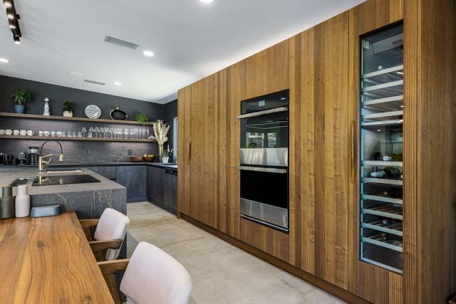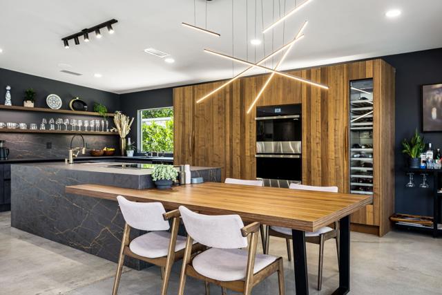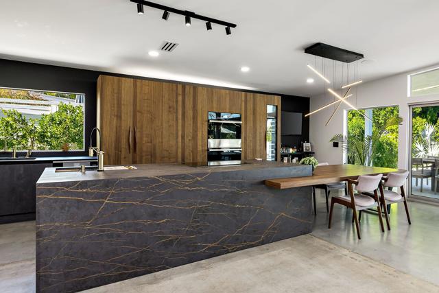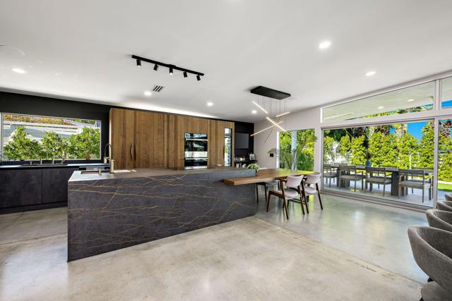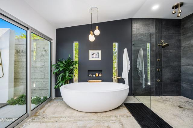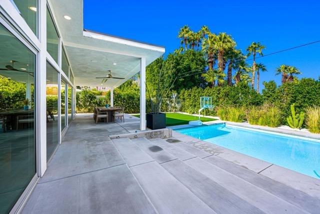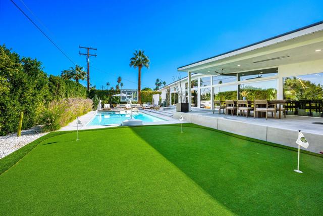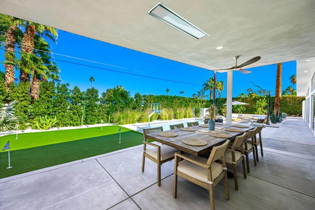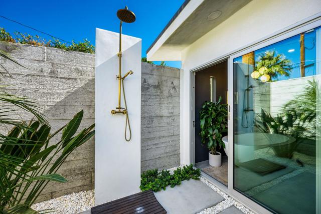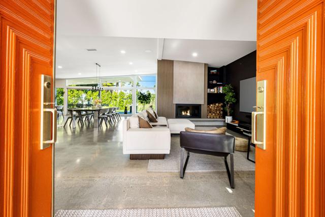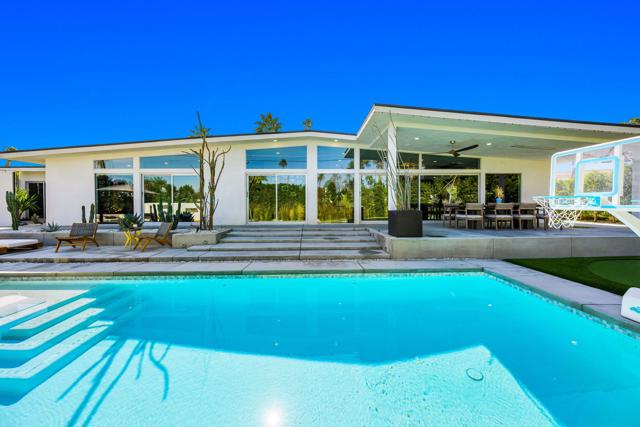 73286 Goldflower Street is a stunning mid-century modern gem by renowned architect Charles Du Bois, once the private retreat of Hollywood legend James Franciscus. Featured on the 2025 Modernism Week Signature Home tour, this meticulously restored and expanded residence blends its iconic heritage with modern luxury. Nestled on a quiet cul-de-sac near El Paseo, this fully furnished home offers the ultimate in south Palm Desert living.A multi-year renovation, completed in 2024, expanded the home to over 3,000 sq. ft., including a seamless 1,000 sq. ft. addition. Du Bois's signature indoor-outdoor flow is enhanced with expansive glass walls, clean architectural lines, and abundant natural light, perfectly capturing California Modernism. High-end finishes, warm walnut accents, and sleek modern tile work elevate the interiors, while smart home technology integrates effortlessly. Every detail, from the restoration of original elements to the selection of contemporary materials, has been carefully curated to honor the home's historic significance while offering today's most desirable comforts.The oversized primary suite is a private retreat with a zen garden, outdoor shower, walk-in closet, and built-in gym. An additional en suite guest room offers privacy, while two guest bedrooms share a spacious bath, making it ideal for hosting. A dedicated laundry area adds everyday convenience.Designed for relaxation and entertainment, the open-plan living space includes a great room with a pool table, multi-room Sonos speakers, and Phillips Hue lighting, all controlled by voice, phone, or wall-mounted panels.The entertainer's backyard features a covered lounge, built in heaters, fire pit, and multiple courtyards, maximizing indoor-outdoor living. Thoughtful landscaping and architectural details create a harmonious retreat.This architectural masterpiece in south Palm Desert presents a rare opportunity to own a piece of history close to El Paseo, shopping and everything you may need.