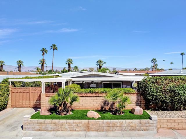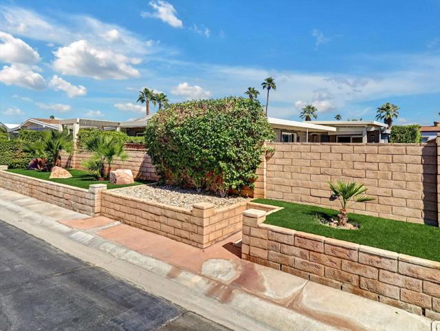Welcome to desert living at its finest in this stunning 3-bedroom, 2-bathroom manufactured home spanning 1,560 square feet of thoughtfully designed space. This completely renovated treasure seamlessly blends indoor and outdoor entertainment with an open floor plan that flows effortlessly throughout. The heart of this home features a spectacular granite island that's practically begging for your next dinner party or casual morning coffee. Whether you're whipping up a feast or just need extra workspace, this kitchen centerpiece delivers both style and functionality. A cozy fireplace offers warmth and ambiance to the living area, creating the perfect gathering spot for family and friends. The split floor plan offers ultimate privacy, with the luxurious primary bedroom featuring an immense walk-in closet and an impressive tile shower that transforms your daily routine into a spa-like experience. Two ADDITIONAL bedrooms PLUS a dedicated office space provide flexibility for work-from-home needs, guests, or hobby rooms. Storage enthusiasts will appreciate the abundant built-in storage solutions throughout the home. Double-pane windows ensure year-round comfort while maintaining energy efficiency. Step outside to your private oasis featuring a gorgeous Pebble Tec saltwater pool and spa with elegant water features. Retractable sun blinds provide customizable shade, while an outdoor shower adds convenience for post-swim refreshing. The extremely private outdoor space is perfectly designed for entertaining, from intimate gatherings to larger celebrations. Located near renowned Eisenhower Health and the upscale El Paseo Shopping District, you'll enjoy convenient access to world-class medical care, dining, and retail therapy whenever the mood strikes. Living in this wonderful community means enjoying low homeowners' association dues that surprisingly cover FREE golf, free internet and trash pickup, a clubhouse with a restaurant, a lounge, 18-hole executive golf course and pro shop, three community pools, hot tubs and an exercise room. Add a billiard room, card room, indoor shuffle board, tennis courts, pickle ball courts, library, recreation room, and many active clubs to realize all that PDGCC offers for your perfect desert home. With a variety of activities, every day can be as active or relaxed as you desire. This incredible home won't last long! Please call for a showing.