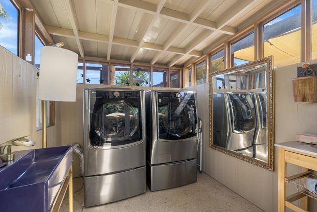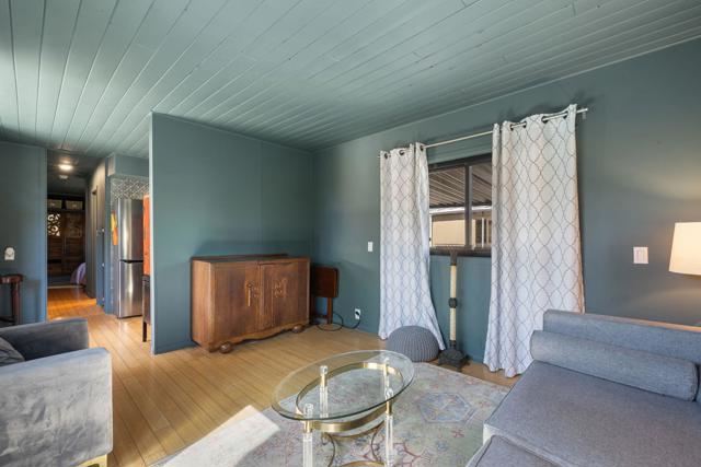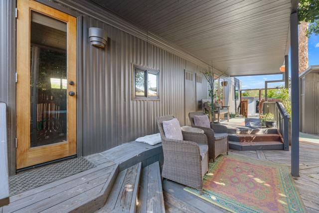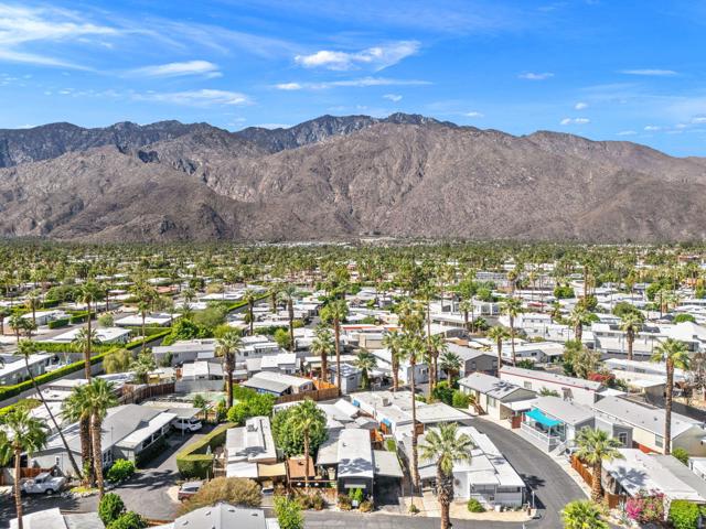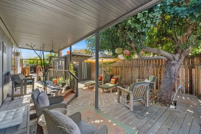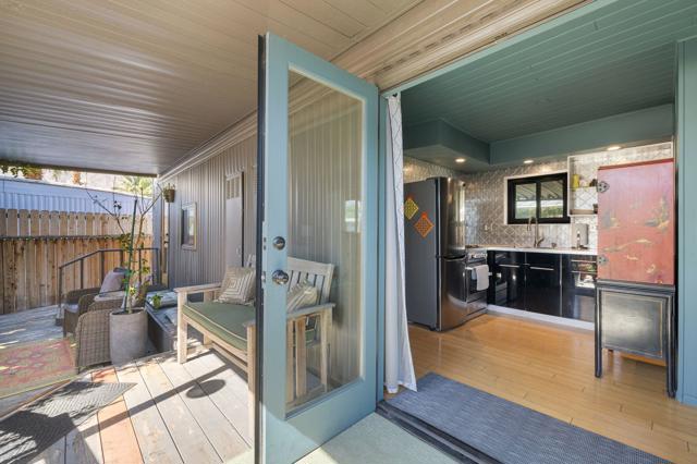 This beautifully renovated 1-bedroom, 1-bath home in the desirable 55+ Ramon Mobile Park is move-in ready and full of charm. Updates include bamboo and tile flooring, fresh paint, a remodeled bathroom, appliances, and French doors that open to a spacious outdoor retreat.The detached studio, currently used as a laundry room, can easily serve as an art studio, workshop, or hobby space. Enjoy a large deck and patio surrounded by mature trees, creating a private oasis perfect for relaxing or entertaining.Fully fenced and gated with great curb appeal, this home is in a prime South Palm Springs location, just minutes from shopping, dining, entertainment, and downtown. Space rent is $886/month. Water, trash, and sewer is a flat fee of $20.50. Metered gas and electricity averaged about $300/month, keeping living expenses very low! The community also offers a heated pool, spa, gym, and clubhouse.