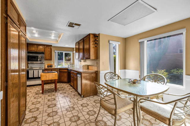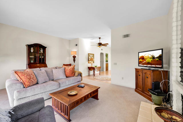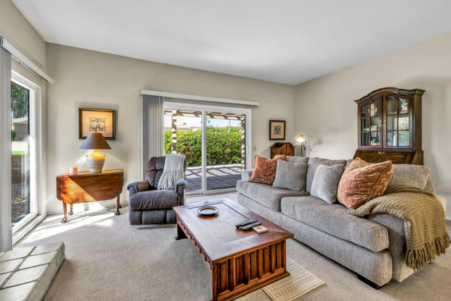Discover the allure of Hidden Palms, a guard-gated community close to El Paseo where luxury meets everyday convenience. This highly desirable location is filled with top-notch amenities, making it a perfect place to call home. Your HOA fees cover essential services like cable, Internet, and trash, allowing you to focus on enjoying the beautifully maintained grounds. Take advantage of scenic walking paths, engage in a game of pickle ball, or relax by the serene lake adorned with stunning water features. With shopping, entertainment, schools, parks, and places of worship just minutes away, the exceptional walkability of this neighborhood enhances its charm.This detached residence, lives like a single-family home with delightful Southwestern exposure and is designed to check all the boxes on your wish list. Spanning 1,584 square feet, the thoughtfully designed layout includes three spacious bedrooms and two bathrooms, one transformed into a tranquil spa-like retreat. The inviting living room, featuring a charming fireplace, creates an atmosphere perfect for unwinding and offers an inviting gathering space.The dual-paned windows and sliders, ensure comfort, while the atrium boasts an operable skylight and easy garage access. The versatile floor plan with its eat-in kitchen is ready for your personal touch and presents a wonderful opportunity to incorporate upgrades that reflect your unique style, complemented by an additional bright formal dining area.Step outside to your private backyard, framed by picturesque mountain views and park like greenbelt, creating an ideal setting for indoor-outdoor living, entertaining, or enjoying peaceful moments. An attached two-car garage provides ample storage and convenient parking. This home is primed for personalization, presenting a fantastic opportunity to infuse it with your individual style. Don't let this exceptional opportunity slip away--contact us today to arrange your private showing!
