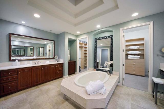 This beautiful home inside Toscana Country Club offers spacious desert living on a generous corner lot. New, mature landscaping provides ultimate privacy while still allowing for spectacular views of the mountains and Hole 4's Green of the Jack Nicklaus Signature North Golf Course. Upgrades to this home include fresh interior and exterior paint, newer HVAC, new pool equipment, and updated furniture. Inside, the two sets of sliding glass doors blend indoor-outdoor living areas, while the wetbar provides butted-glass windows allowing for panoramic views. The gourmet kitchen offers the perfect entertainment prep space, complete with ample cabinetry, island, breakfast bar peninsula, granite counterops, and SubZero Wolf stainless steel appliances. For casual dining, a breakfast nook is accompanied by a dry bar perfect for morning coffee. Retreat to the master bedroom,which features space to lounge, and sliding glass doors to a private patio overlooking the pool and spa. The grand en-suite has His & Hers sinks with separate vanity, enormous soaking tub, walk-in shower, and His & Hers closet entries. Guests can relax in the main-home guest room, or a more secluded guest room with access to a private patio in the courtyard.