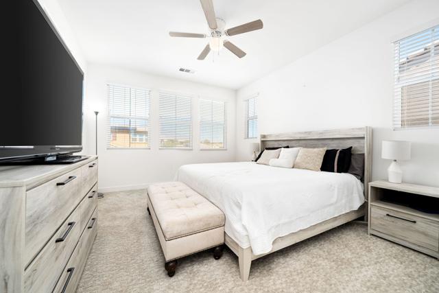 Call Listing Agent James Guillermo 7604491345 Located in the desirable gated community of Dolce, this like-new home offers 3 bedrooms, 2.5 bathrooms, and an open-concept floor plan designed for modern living. The home features upgraded flooring, custom cabinetry, recessed lighting, and a kitchen bar area with upgraded countertops--perfect for entertaining. The primary suite includes a dual vanity, large walk-in closet, and plenty of natural light. Additional upgrades include solar power (tenant pays approximately $100/month), an EV charger, tankless water heater, and low-maintenance desert landscaping in the front yard. The backyard is beautifully finished and showcases stunning mountain views.Enjoy access to the community pool and other amenities that make Dolce a sought-after neighborhood.📅 Available January 1, 2026 Property is tenant occupied and requires 48 hr notice Available January 1'st 2026
