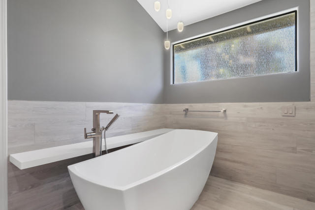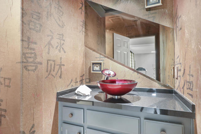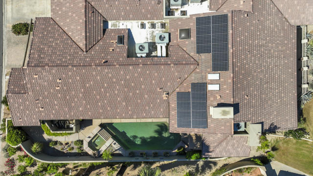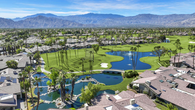 This expanded Santa Fe floor plan at The Lakes Country Club offers over 3,200 sq. ft. of beautifully designed living space. The home features an added office and an additional bedroom/media room with twin Murphy beds--perfect for guests or flexible use.Walls of windows frame the private pool and spa in your enclosed side yard, while the expanded patio on the golf course side offers a built-in outdoor kitchen and spectacular double fairway views complete with a stone bridge and tranquil water feature. 2 ceiling mounted gas heaters keep this additional entertaining space warm for cool desert nights. The kitchen has been upgraded with warm rich cabinetry sparing no expense emulating a french farmhouse. Coffered ceilings with in laid ambient lighting is centered over a large two tiered island with creamy countertops on the top tier, while an authentic butcher block lower tier makes this kitchen so fun for any level of cooking! 2 dishwashers for easy clean up. The primary suite has been expanded with French doors that open to the private side yard, and the remodeled primary bath showcases a sleek, contemporary design with a walk-in, step-free shower. Additional highlights include an enlarged laundry room with extra refrigerator and freezer, an added golf cart garage, and abundant storage throughout--ideal for keeping everything organized and easily accessible.Impeccably maintained, And SOLAR!!!