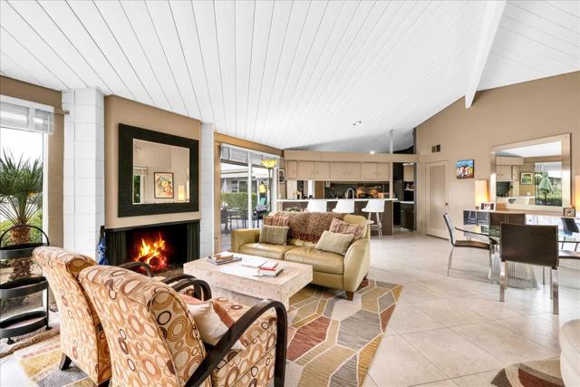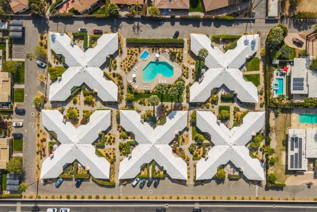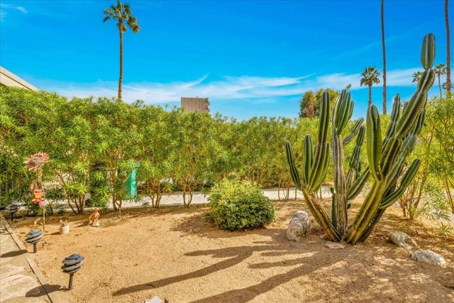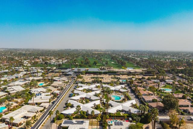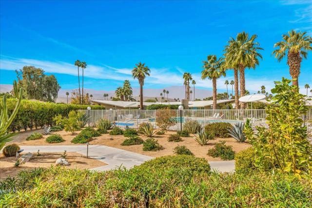 Welcome to Iconic Da Vaal Estates, often referred to as the original Desert-X! This Midcentury Modern architectural masterpiece is located in the highly sought after Tamarisk Country Club area of Rancho Mirage. The property was designed in 1960 by renowned architect Val Powelson & built by contractor, Robert Marx, son of Gummo Marx. These 20 units were originally built for the Hollywood friends of the Marx brothers to come out to the desert to play golf next door at Tamarisk Country Club. Current owners have re-discovered & fallen in love with the beautiful mid-century design aesthetic of a bygone era. Consisting of five, one-level, 4-unit dwelling groupings based on a four-pointed star with no common walls. The only point at which these units are attached is at the center of the ''X'' where each unit has a large storage area originally designed to store your golf cart. The space now houses your laundry, HVAC and water heater. The open living plan spans approximately 32ft & features a vaulted tongue and groove ceiling that soars to 14ft! At one end of the triangular floor-plan is a very generous Primary Suite & at the other a guest bedroom & bathroom suite. There are walls of glass and clerestory windows that fill the space with an abundance of natural light. Once a grapefruit orchard, Da Vaal Estates retains original fruit trees on a 2 1/2 acre site with astounding views! The property is listed on the Rancho Mirage Register of Historic Properties which allows you a very low annual property tax base. Taxes are included in the monthly HOA fee. Da Vaal Estates is a Stock Cooperative. Each owner is issued a ''stock certificate'' granting a 1/20th share of the complex with exclusive use of a specific unit.