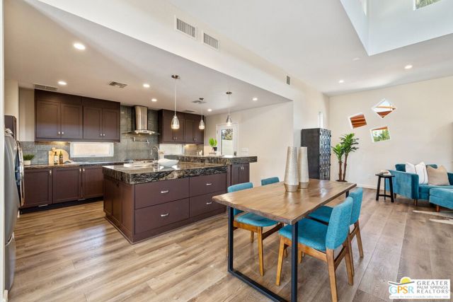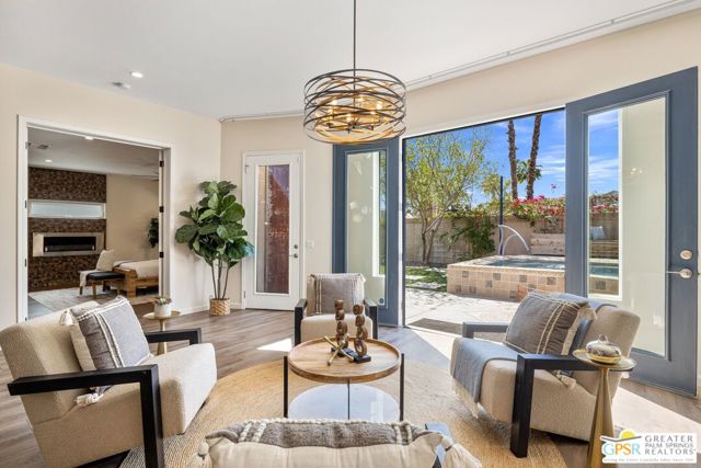 WOW! Check out this FANTASTIC opportunity in Tamarisk Heights that is an ideal match for those seeking CONTEMPORARY LIVING in South Rancho Mirage! Located within minutes to restaurants, retailers, and multiple country clubs, this home has been FRESHLY STYLED UP! Key highlights include tall ceilings, clerestory windows, open floor plan, contemporary finishes and tile flooring throughout, great separation of bedrooms, and an ultra-private south-facing backyard that includes a private saline pool, mature landscaping, and views of the surrounding mountains! Fresh interior paint plus recent system upgrades including a HVAC unit and tankless water heater. No land lease and no HOA fee, either! Custom-designed front door and formal entry with clerestory windows work to create a scene of magic that continues into the grand Great Room that features tall ceilings, eight clerestory windows, mountain views, and three sets of doors that open to the south-facing backyard that is anchored by a refreshing pool with custom water features. Adjacent kitchen, which looks into the Great Room, includes contemporary cabinets, stainless appliance suite including gas range with pot filler, and an oversized detached island with stainless steel farm sink and built-in counter bar ideal for both casual living as well as entertaining! This IS the floor plan for people who love to entertain! Primary Ensuite has been styled up with a fireplace, large walk-in closet, and private contemporary bath with dual sinks, quartz counters, large walk-in shower with four showerheads, and a separate jetted tub. A true SPA experience! On the other side of the house is Junior Ensuite Two with clerestory window, access to the outside, and a private bath that includes a walk-in shower. Separate powder/guest bath, too! Don't miss out on this incredible opportunity in Tamarisk Heights!