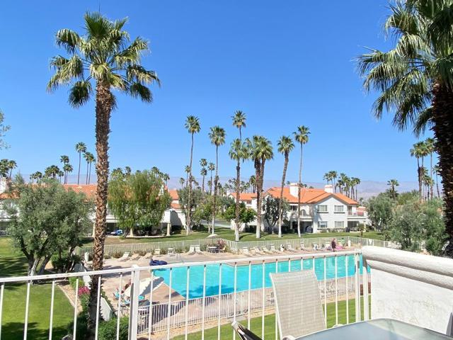 Fantastic location and just steps away to our Jr. Olympic Pool. This 2 bedroom, 2 bath original condition is perfect for your own personal touch. This Upper level, end unit, looking onto the Jr. Olympic Pool is a fantastic location. Nice and bright with an open concept with bedrooms on opposite ends for privacy. Within walking distance to restaurants and shopping and only a few miles to all the top entertainment venues. Acrisure Arena, Agua Caliente Spa & Casino, the McCallum Theatre and El Paseo: a 2-mile boulevard of upscale Galleries, Boutiques, and fine Dining Restaurants are all within just a few minutes' drive. HOA Dues include Cable, WI-FI, building and grounds maintenance, Tennis, Pickleball, Fitness Center, and 32 Pools & Spas. Memberships available but not required for our Championship Scottish Links Golf Course. Call Today to schedule your private tour.