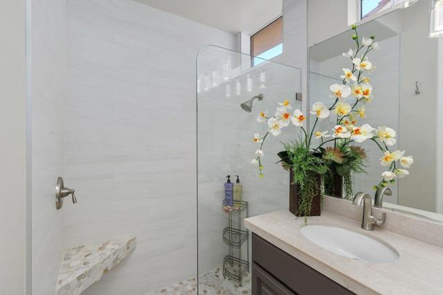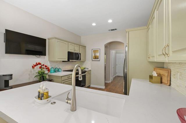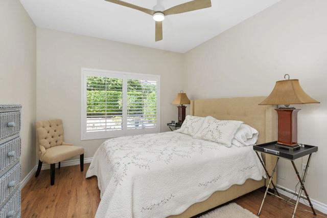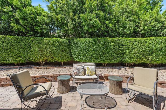 Sun City Palm Desert - Waterford Model | 55+ CommunityIdeally situated just a short walk from the Mountain View Clubhouse, this beautifully upgraded Waterford Model offers exceptional curb appeal and stylish desert living. Fresh exterior paint, low-maintenance desert landscaping, and interlocking pavers create a warm welcome, while the south-facing courtyard is perfect for enjoying sunny desert days.Step inside to a bright and inviting living room with sliding doors that lead to a spacious, fenced rear patio--ideal for entertaining or relaxing in privacy. The smart split-bedroom floor plan ensures extra privacy, with bedrooms and bathrooms located on opposite sides of the home. Elegant wood floors, plantation shutters, and quality window treatments are found throughout.The kitchen is a true highlight, featuring abundant counter space, upgraded cabinet doors, a gas range, newer stainless refrigerator, and upgraded countertops. The charming breakfast nook is surrounded by windows and opens to the patio, bringing the outdoors in.The primary suite includes a large walk-in closet, dual vanities, and a walk-in shower, offering comfort and convenience. An oversized indoor laundry room with a built-in desk provides a functional home office space, while the attached two-car garage features ample storage racks.Both bathrooms have been completely remodeled, and the kitchen has been tastefully upgraded. Offered fully furnished and turnkey, this home is move-in ready--just bring your toothbrush!A must-see opportunity to enjoy the best of Sun City Palm Desert living.