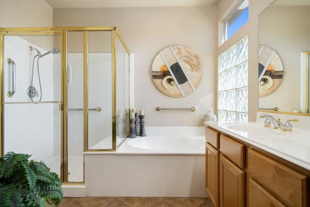 Light, bright and airy, the Monaco is one of the most desirable floor plans in Sun City offering open concept living, privacy between guest bedrooms and flexibility of space. This home sits on a corner lot on the end of a quiet street with an extended backyard. As you enter you are greeted by 10 and 12 ft high ceilings and glass sliders offering streams of natural light. The open kitchen has a dual oven with separate microwave. A generous sized island, makes cooking and entertaining a breeze. The main bedroom has an ensuite bathroom with a soaking tub, dual vanities, and a walk-in shower. The walk-in closet offers custom built-in organization. The over-sized guest bedroom with bath ensuite acts as an attached casita with its own separate entrance via glass french doors from the courtyard. The third bedroom could be used as flex space for use as a bedroom, office or den. All bedrooms have bathrooms ensuite. Step outside to the beautifully landscaped backyard. The extended patio offers fruit shade trees and lush landscaping. Enjoy your morning coffee under blue skies in your peaceful private backyard. The 2 car garage + golf cart space has a custom tool/workspace area and an abundance of storage options. Located near shopping, dining and top medical centers, Sun City is a 55+ community with two golf courses, tennis, pickleball and bocce courts, 3 clubhouses and two fitness centers. Furnishings are available outside of escrow.