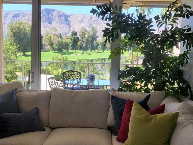 This exceptional corner unit offers stunning south and west-facing views of both the mountains and lake. A rare three-bedroom layout enhances flexibility and comfort. This residence features a spacious, modernized kitchen with granite countertops and ample storage. Main bathroom features large soaking tub and modern bidet. Elegant wood-look flooring along with custom lighting and electric window shades contribute to a refined interior atmosphere. The generous covered terrace is finished with stamped concrete and includes a gas jet for a BBQ, making it ideal for entertaining while enjoying impressive vistas.Desert Island stands as a distinctive high-rise condominium community on a lush, 25-acre private island encircled by a sparkling lake and a lush green 18-hole championship golf course. Residents have access to beautifully landscaped park-like grounds with walking paths, fruit trees, seating areas, tennis and pickleball courts, heated swimming pools and spas, pedal boats, fishing facilities, and secure 24-hour guard-gated entry.The HOA fees cover on-site management, along with air-conditioning, water, gas, trash, Spectrum cable TV, Wi-Fi Internet, and the maintenance of landscaping and common areas, providing a low-maintenance carefree lifestyle. Close to shopping, dining, theaters, galleries, and casinos, and has easy access to Eisenhower Medical Center. Schedule your showing today and discover why this home is not just a property, but a place to create lasting memories!