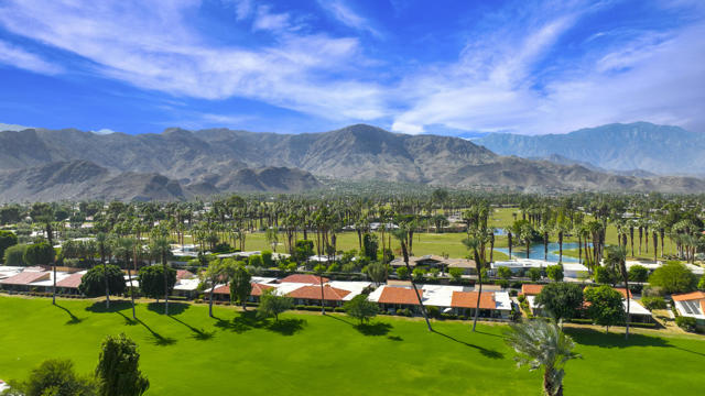 Experience both timeless elegance and modern amenities in this meticulously maintained, fully furnished home. Rustic Spanish tile floors combine with vaulted ceilings and a comfortable, carpeted living room to create a welcoming atmosphere. The kitchen is updated with new appliances and accented by sleek white tile countertops. Dual pane windows boost energy efficiency while offering picturesque views throughout the year. Each bathroom is fitted with contemporary showers, including a double vanity in the primary suite for added luxury. The residence is completely handicapped accessible, with cozy carpeting in each bedroom for warmth. Plantation shutters on the west side frame breathtaking views of the golf course and mountains, ideal for relaxing evenings. A newer HVAC system and water heater provide additional peace of mind.Sunrise Country Club offers secure, guard-gated living with 746 residential condos, an 18-hole Par 64 golf course, nine championship tennis courts, ten pickleball courts, twenty-one pools and spas, plus a clubhouse featuring a dining room, lounge, grille, pro shops, and a fitness/activity center. Two new bocce ball courts add to the recreational options. Located in Rancho Mirage--the heart of the desert--the community is close to top shopping, entertainment, and health facilities. Palm Springs International Airport is only 20 minutes away.