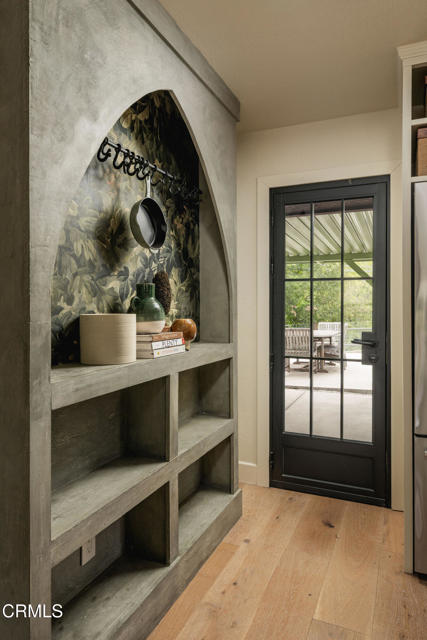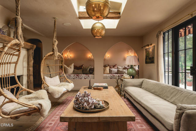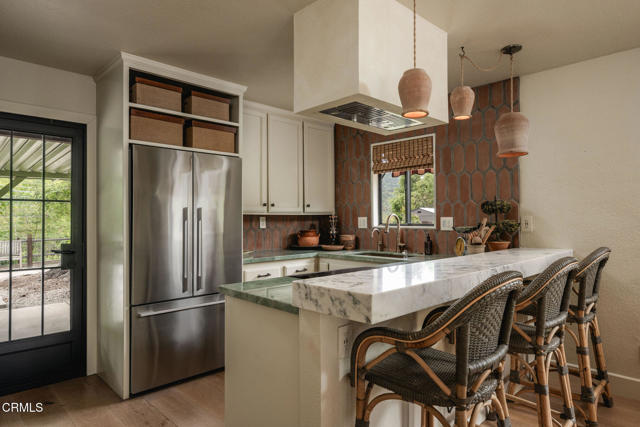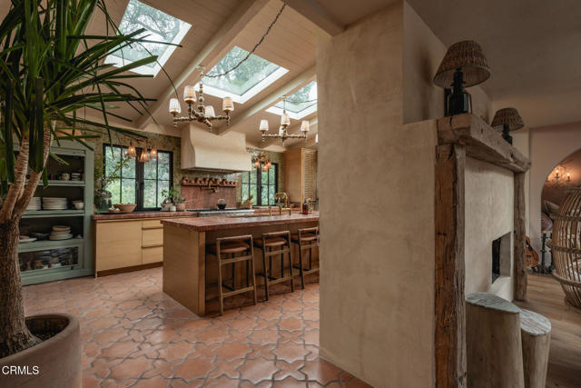 Just minutes from downtown Ojai, this private 1.21-acre knoll overlooks the valley, surrounded by orchards, ranches, and the quiet rhythm of the river. Thoughtfully reimagined, the property reflects the essence of Ojai, relaxed, natural, and beautifully connected to its surroundings.Two dwellings sit comfortably on the land, redesigned to flow together as one cohesive retreat. The main residence offers 3 bedrooms, 2 bathrooms, and 2,118 sq ft, while the second home provides 2 bedrooms, 1 bathroom, and an attached garage, ideal for guests, extended family, or a creative studio. Inside, refined craftsmanship and timeless materials create a sense of warmth and ease. Wide-plank white oak floors, Stars & Cross Saltillo tile, hand-troweled adobe walls, and a Venetian-plaster fireplace add depth and texture. Seven skylights fill the home with natural light, complemented by custom aluminum windows, solid oak doors, and a Vasari-plastered exterior for timeless charm. The kitchen serves as the heart of the home, blending beauty and function with marble countertops, custom white oak cabinetry, a Viking 8-burner cooktop, Fisher & Paykel refrigeration and wine columns, and a six-foot copper farmhouse sink. Modern upgrades include an 8.2 kW owned solar array with 10 kW battery backup, Tesla EV charger, Bosch HVAC, and whole-house water filtration, ensuring both sustainability and comfort. Outdoors, 35 fruit trees and mature oaks frame peaceful gardens and open spaces, creating an inviting environment for relaxation and connection. A rare Ojai retreat where craftsmanship, comfort, and nature come together in perfect balance.